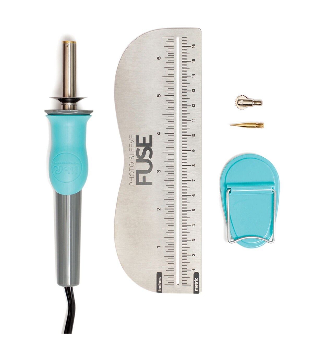 Create custom pockets and sleeves. The welding tip creates a strong, clean, micro-weld seam that will not tear or separate. The cutting tip allows a slit to be cut in the sleeve. Use to seal in keepsakes and memorabilia. Create waterfall photo sleeves. This 7x10.5x2.25 inch package contains one tool with a UL listed cord, one fusing tip, one cutting tip, one 6.5 inch long ruler stencil and one tool stand. WARNING: Choking Hazard- small parts. Not for children under 14 years. Imported.