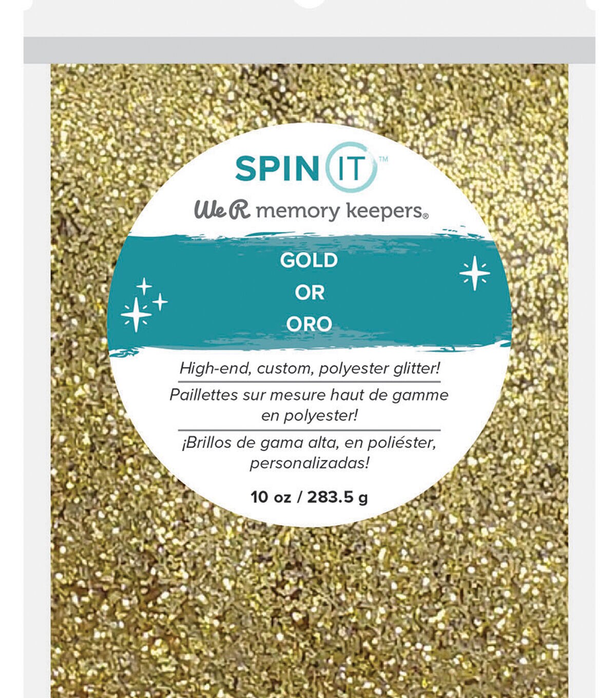 Projects come full circle with Spin It by We R Memory Keepers! Add Spin It embellishments like this glitter to your tumblers, cups, coasters, and more for a dose of texture, color, and shine. This package includes 10 oz of Gold polyester glitter.