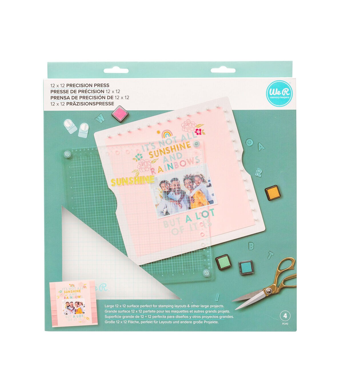 Make a great first impression with the Precision Press by We R Memory Keepers! This 12x12-inch Precision Press uses even, downward pressure to make smooth, perfect stamps every time. It is ideal for making repeated stamps for cards, layouts, and more! Its wide surface area makes it great for projects big and small. And it's easy to use and works perfectly with any thickness of stamp! Simply place your project on the base and align your stamp to the precision grid and give it a go. This package includes the 12x12-inch Precision Press , and 2 magnets.