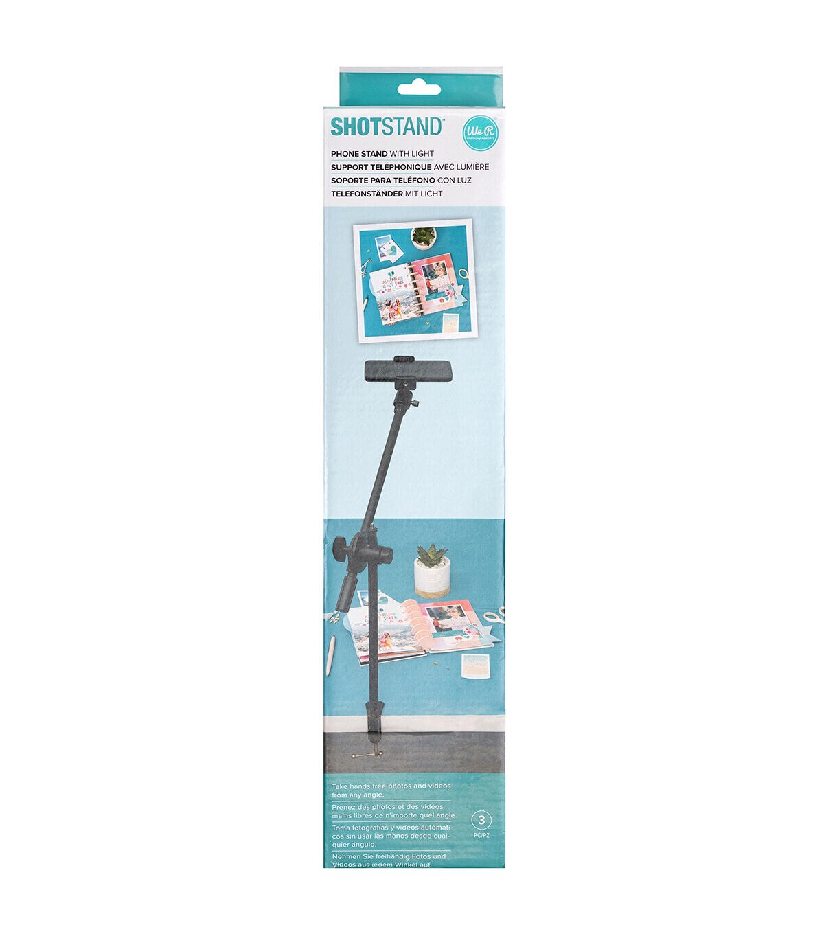 - Includes one extendable phone stand with light