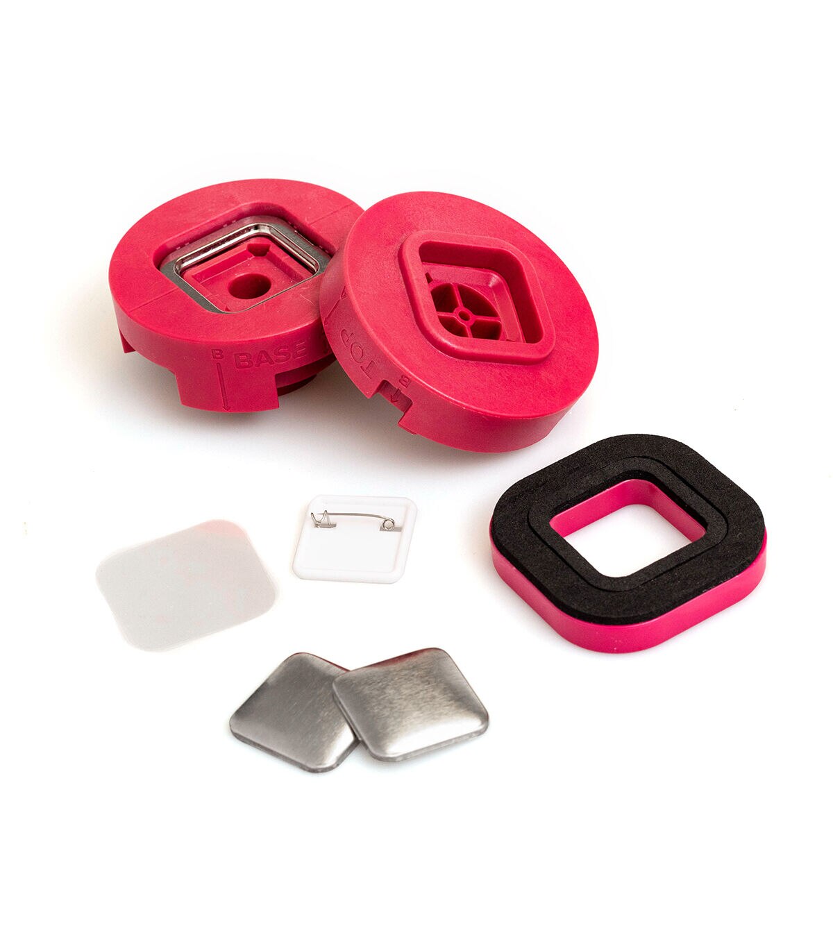 - INCLUDES: 1 square Button Press insert, and enough material to make 5 square buttons