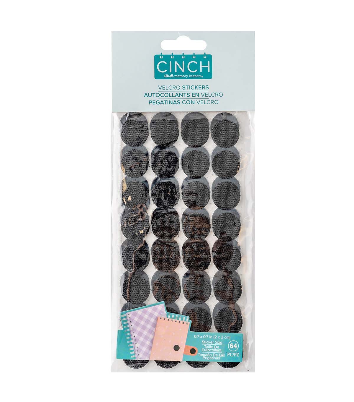 The Cinch Book Binding Machine by We R Maker makes book binding quick, easy and affordable. Punch perfect holes with customizable hole spacing on any size project. Then thread the covers and pages onto the Cinch binding wire. Finish it all off with these hook and loop stickers! They'll keep your projects closed so you can take them in backpacks, purses, and other bags. This package includes 64 hook and loop stickers.