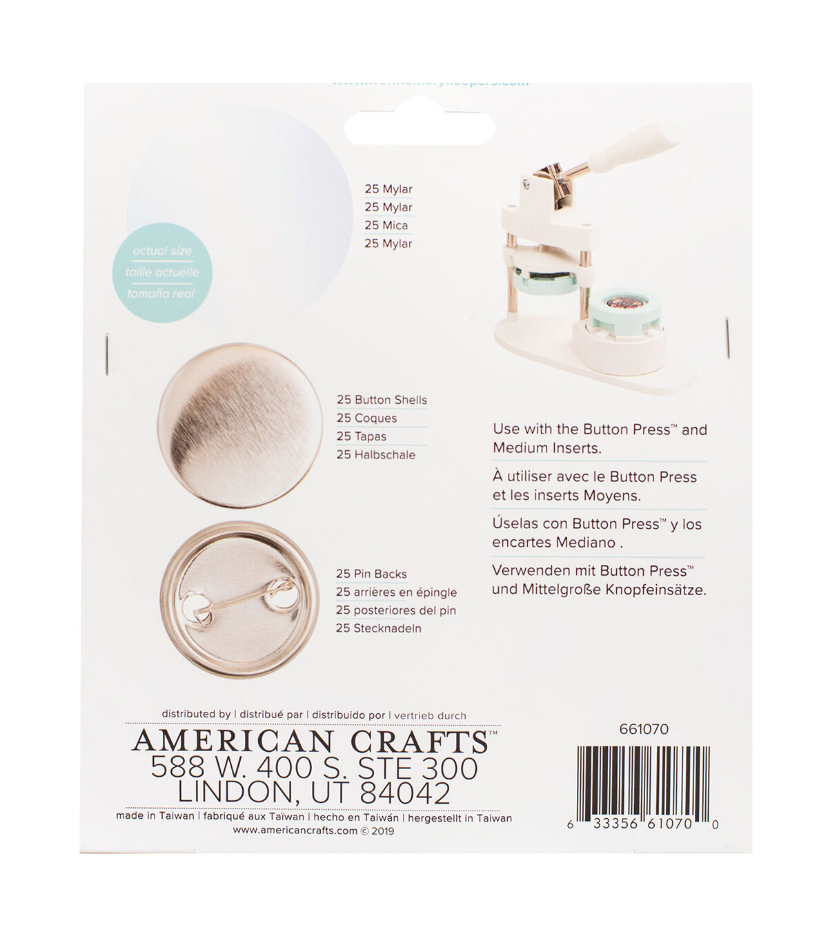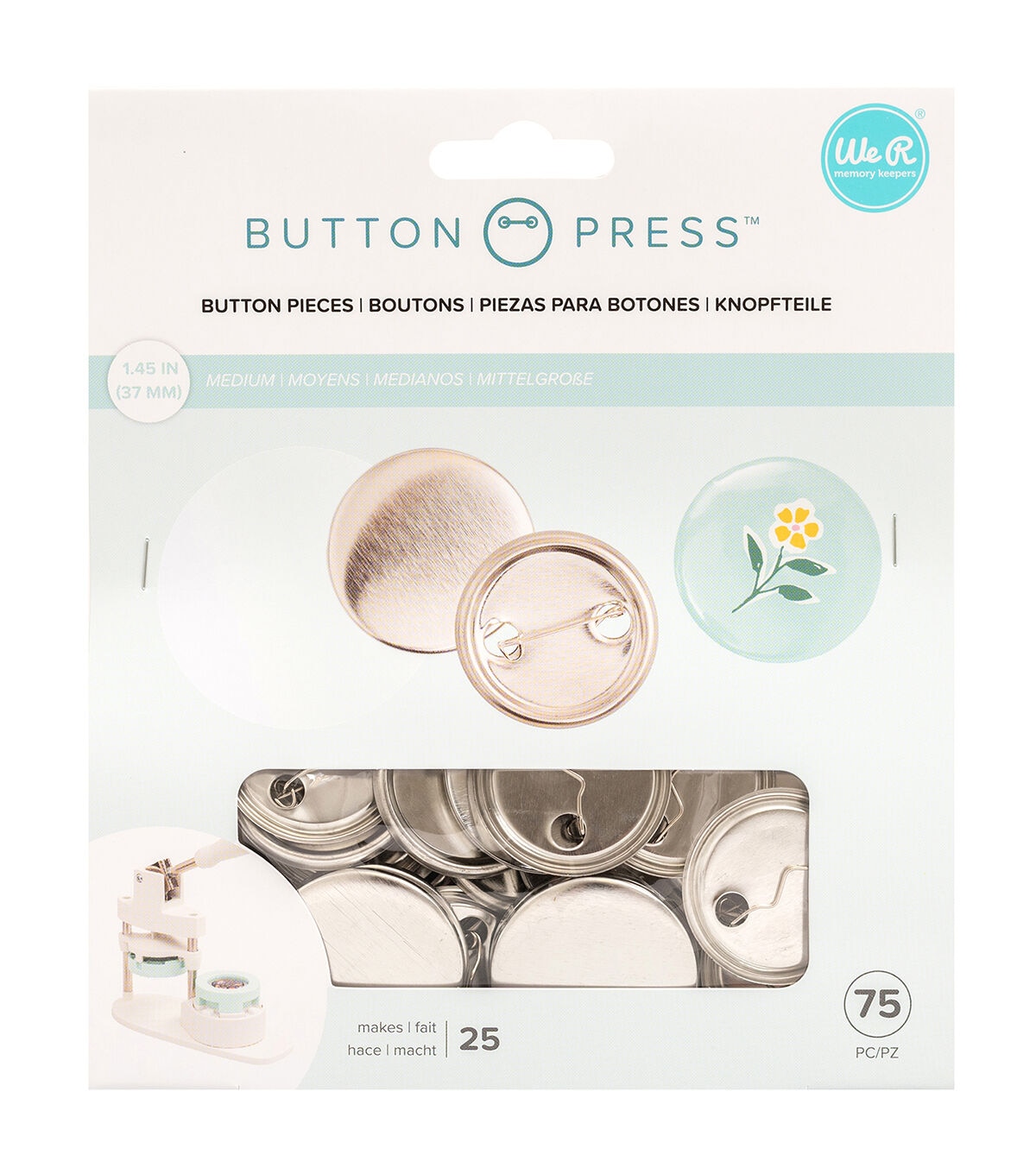 Easily create buttons, magnets, keychains, and so much more with the Button Press by We R Memory Keepers! Create custom medium sized buttons for backpacks, purses, and more with these button refill packs. This package includes enough pieces for 25 buttons (75 pieces) in a 37mm size.
