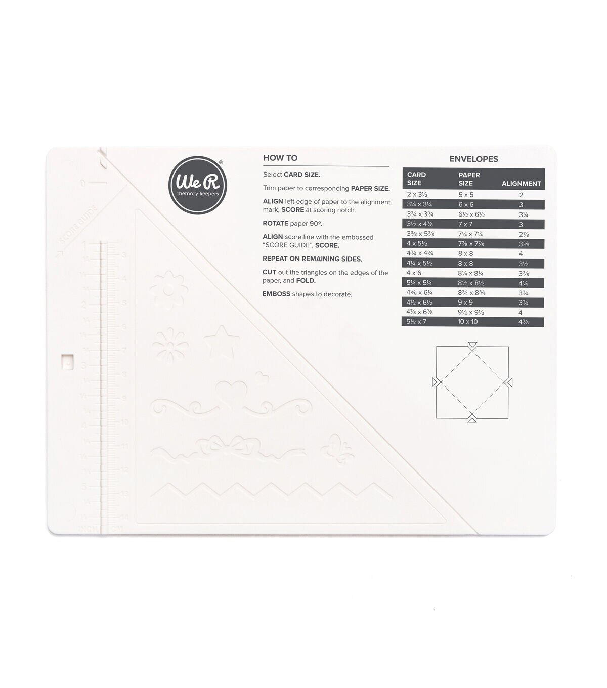 Create personalized envelopes and other fun crafts with the We R Memory Keepers Mini Score Board. This bite-sized board is perfect to make and score your own envelopes and add embossed shapes for decoration. Its small size cuts down on clutter in your creating area, and helps you make custom, personalized paper crafts for special occasions, holidays, birthdays and more.