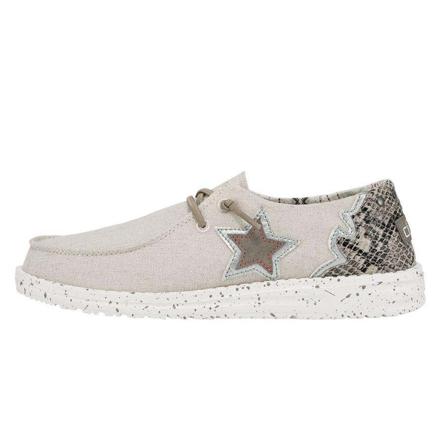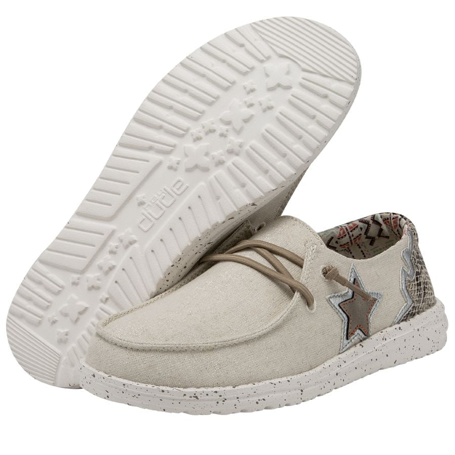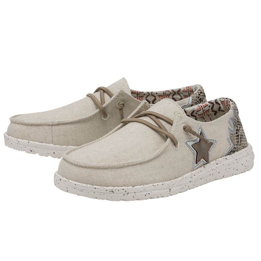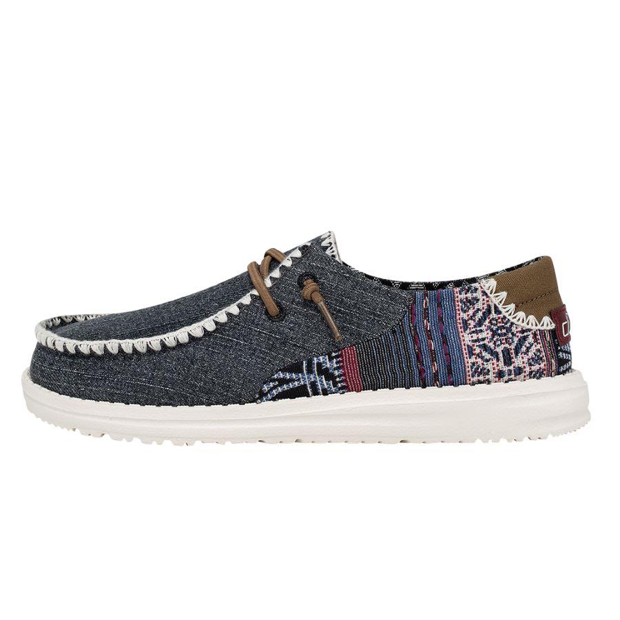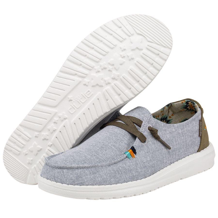Washed cotton materials, crochet embroidery, and hand-stitched details come together for a customized look. With our Easy-On elastic lacing system and patented UltraLIGHT EVA outsole to keep it comfy. Featuring contrasting textures and hand-stitching at the heel. So festival ready.