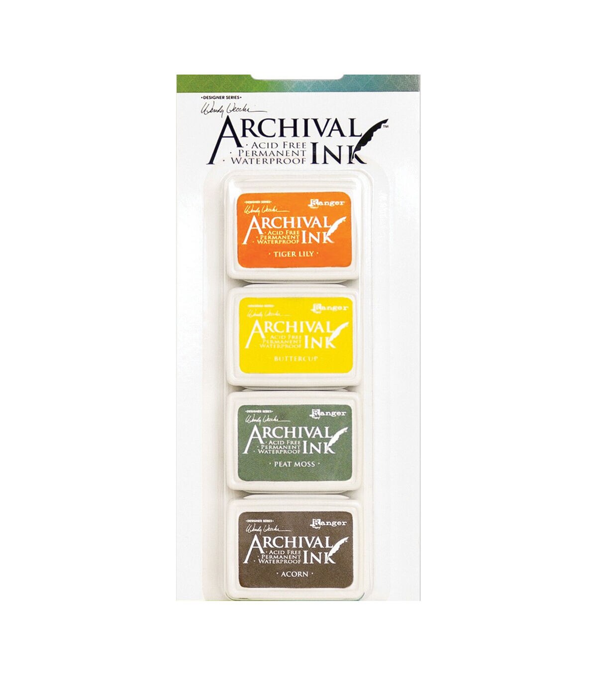 Wendy Vecchi's Mini Archival Ink Pads have the same high quality, fade resistant dye ink formula used in the full size Archival Ink Pads. Archival Inks provide long lasting stamping results that are permanent on many surfaces. Get a crisp image that doesn't bleed over water based inks, markers, acrylic paint, water colors, and more. The small size makes these convenient for projects on the go. This package contains four 1.75x1.38x0.65 inch ink pads. Recommended for ages 18 and up. Conforms to ASTM D4236. Made in USA.