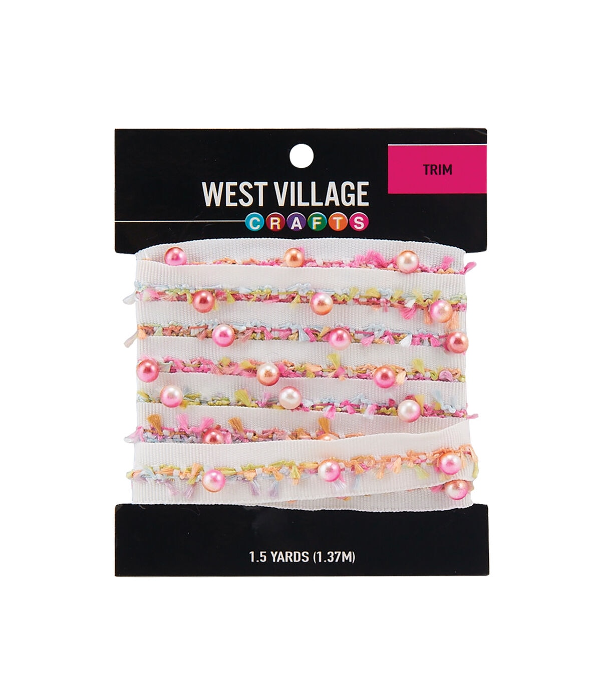 Use the West Village Crafts Sew-on Beaded Trim-Pink is just what you need to prettify your fabric creations. This sew-on woven ribbon trim in white is embellished with pink bead accents, and will make a beautiful addition to your sewing kit.