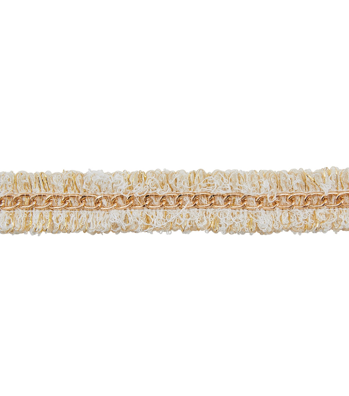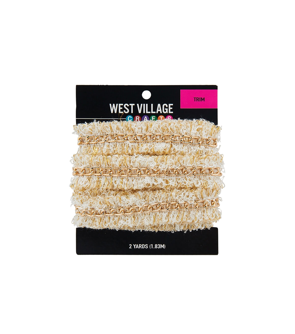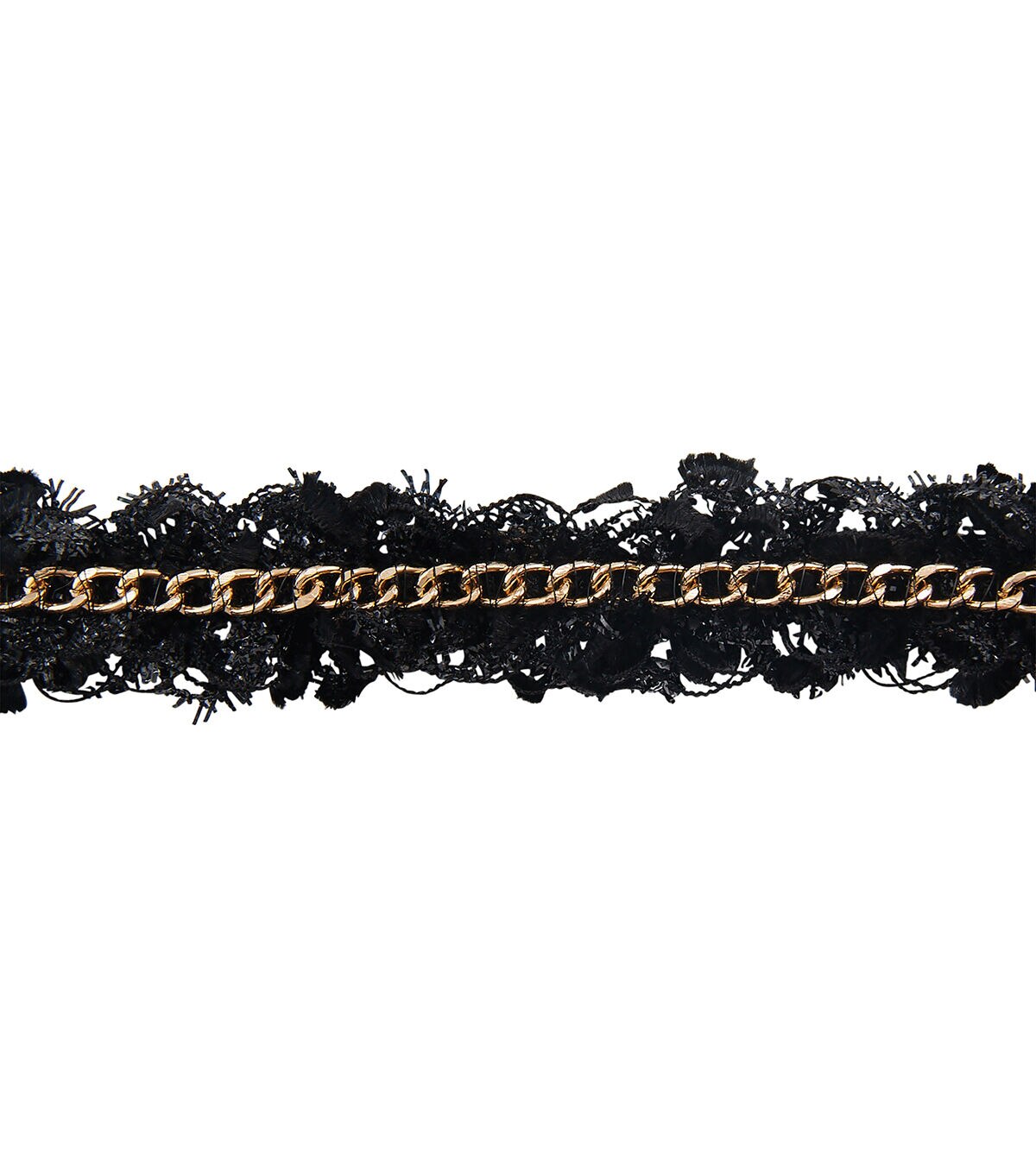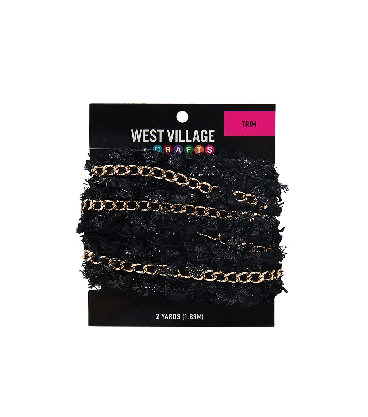 The West Village Crafts Sew-on Tweed Trim with Chain-Black & Gold is just what you need to add style and visual interest to any sewing project. This black sew-on tweed trim is embellished with gold-toned chain accent, and will make your creations unique.