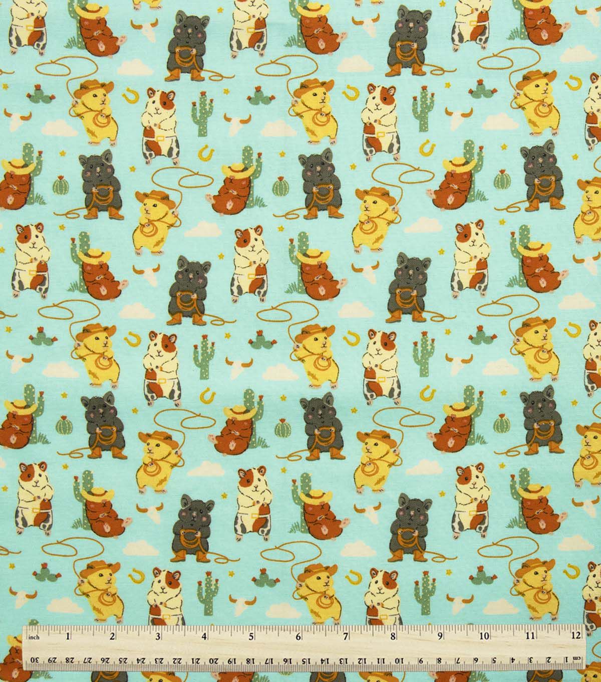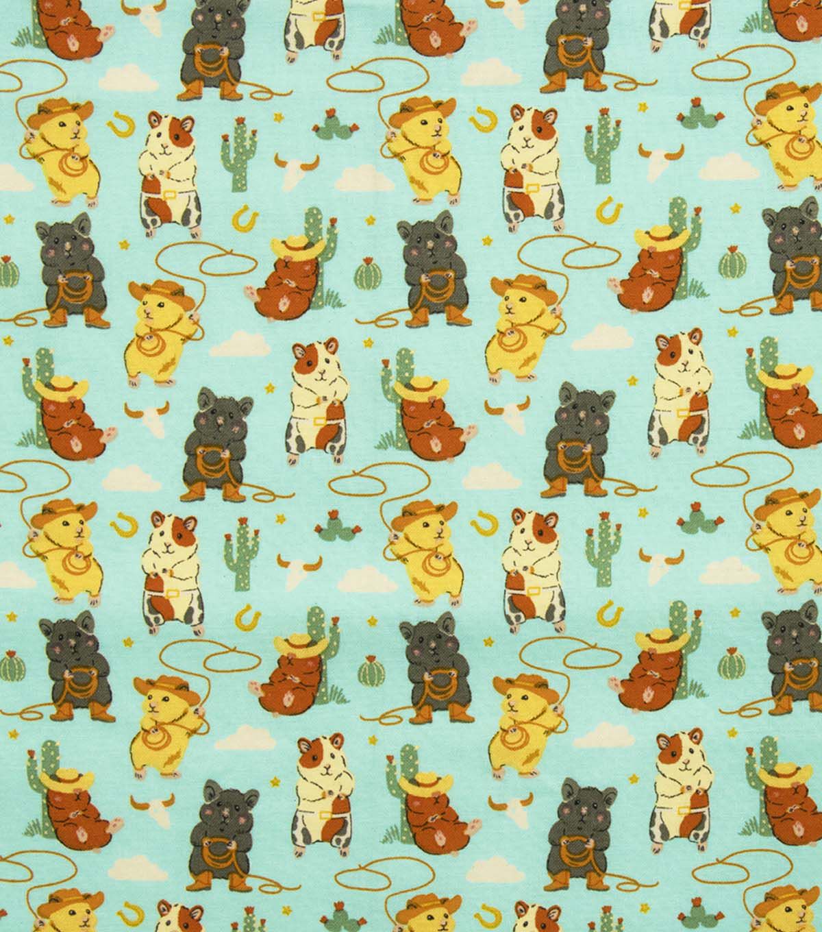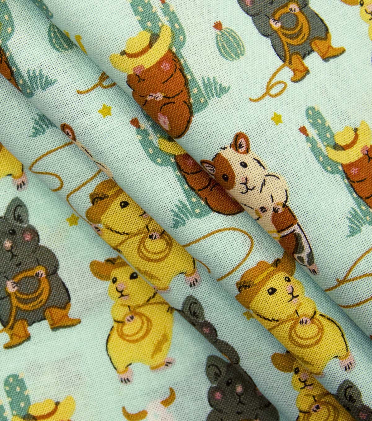 Bring a touch of whimsy to your next sewing project with this delightful Western Guinea Pigs on Green Novelty Cotton Fabric. The charming design features cute guinea pigs dressed in cowboy hats and boots, set against a vibrant green background. This fabric is perfect for creating unique and playful home decor items, clothing, and accessories.