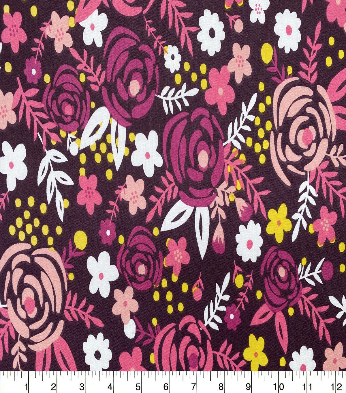 Whimsy Floral on Berry Wine Quilt Cotton Fabric by Quilter's Showcase