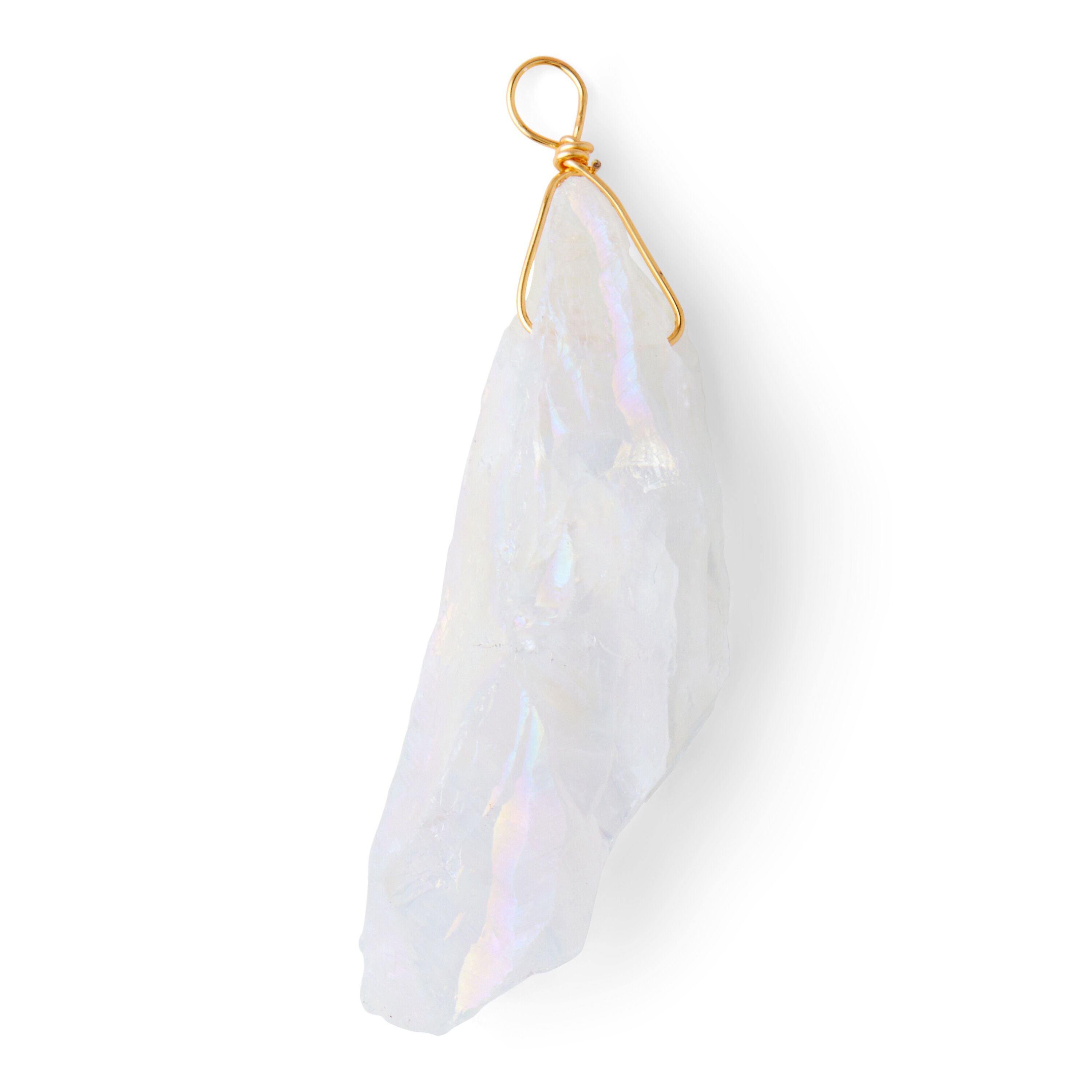 Accent your day dresses or gowns by wearing a statement jewelry piece made using the hildie & jo Effortless Charm Stone Pendant-AB White. This beautiful stone pendant showcases a faint iridescent tint on the white surface for visual flair. You can team it with a matching pair of earrings to complete your look.