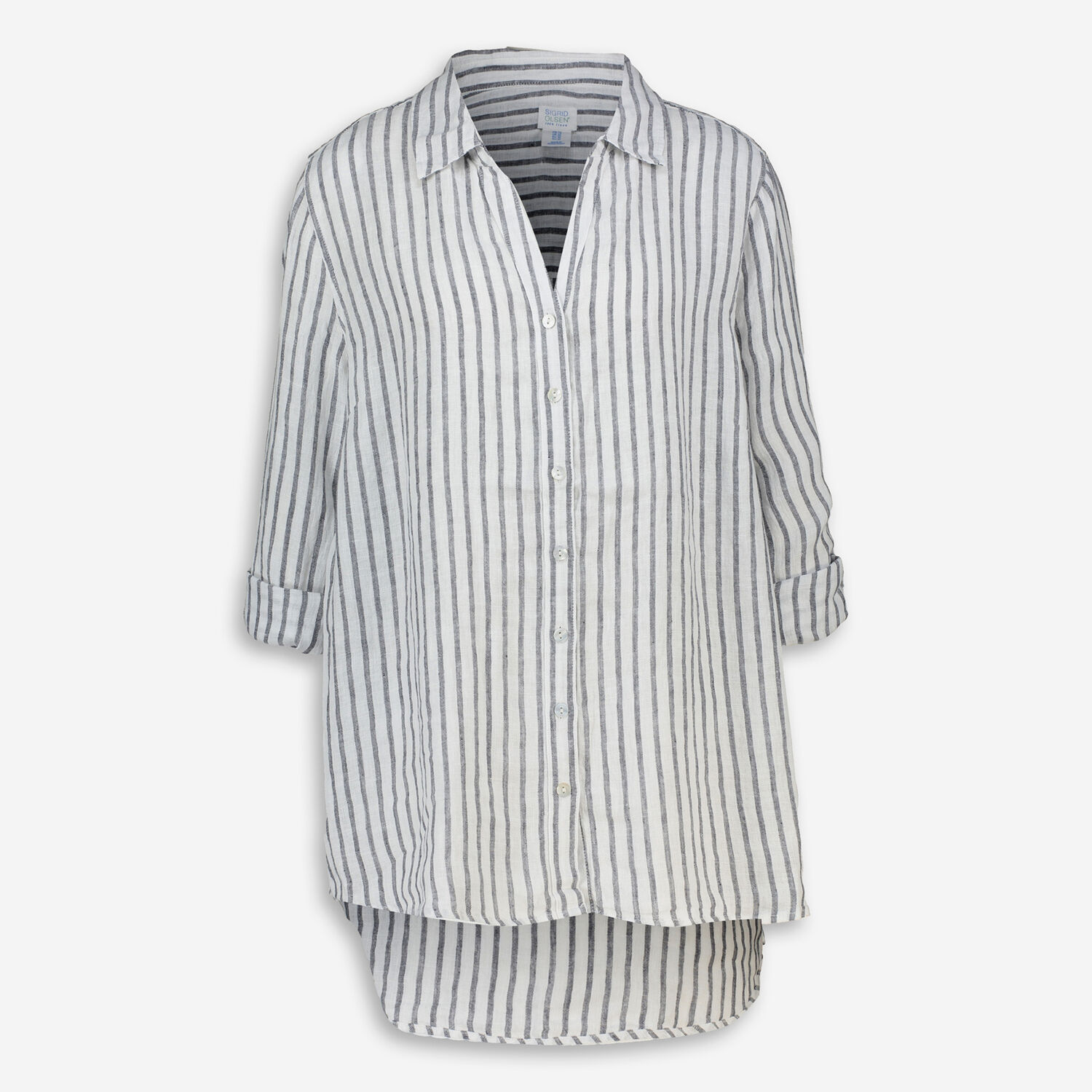 • White & Blue Linen Striped Blouse