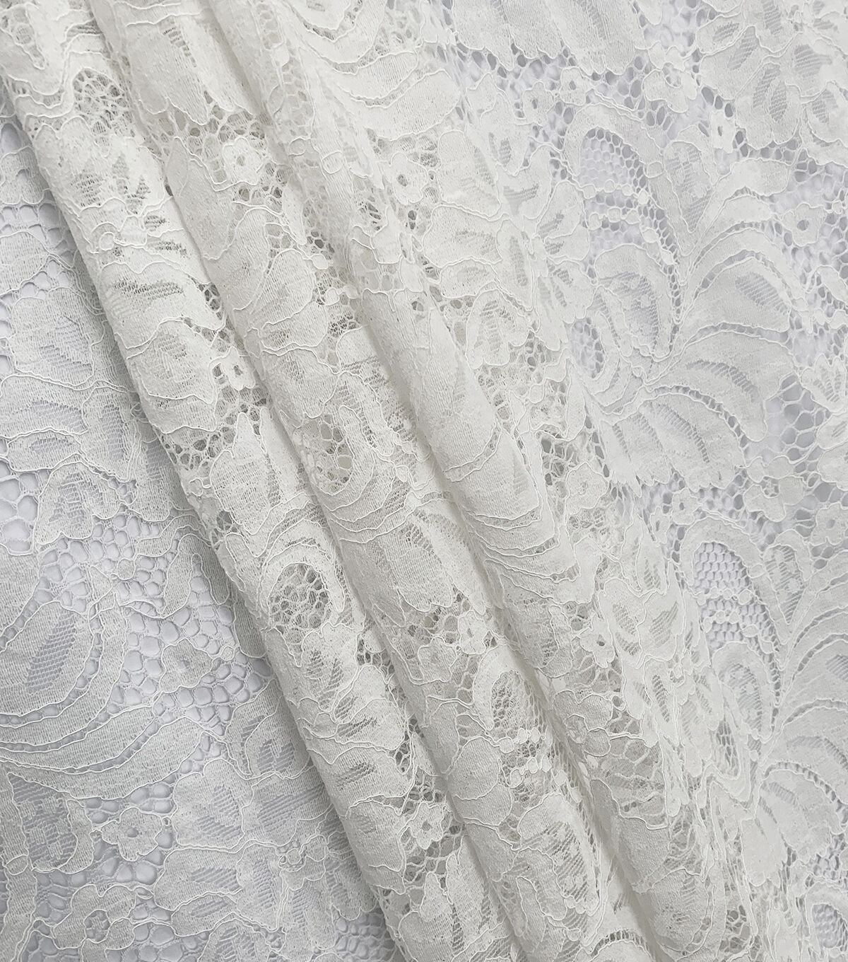 • White Bridal Floral Print Boho Lace Fabric