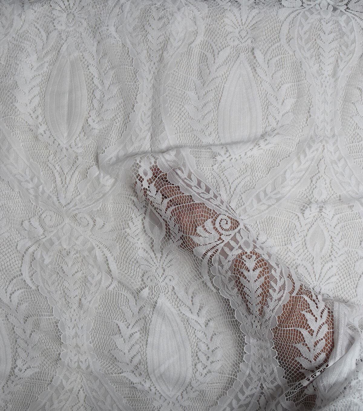 • White Bridal Large Scale Boho Lace Fabric