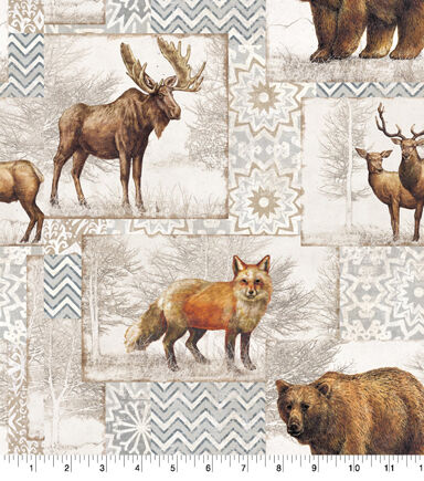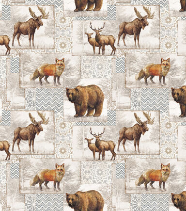 • White Christmas Lodge Novelty Cotton Fabric