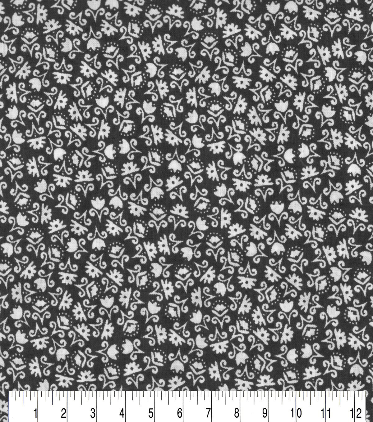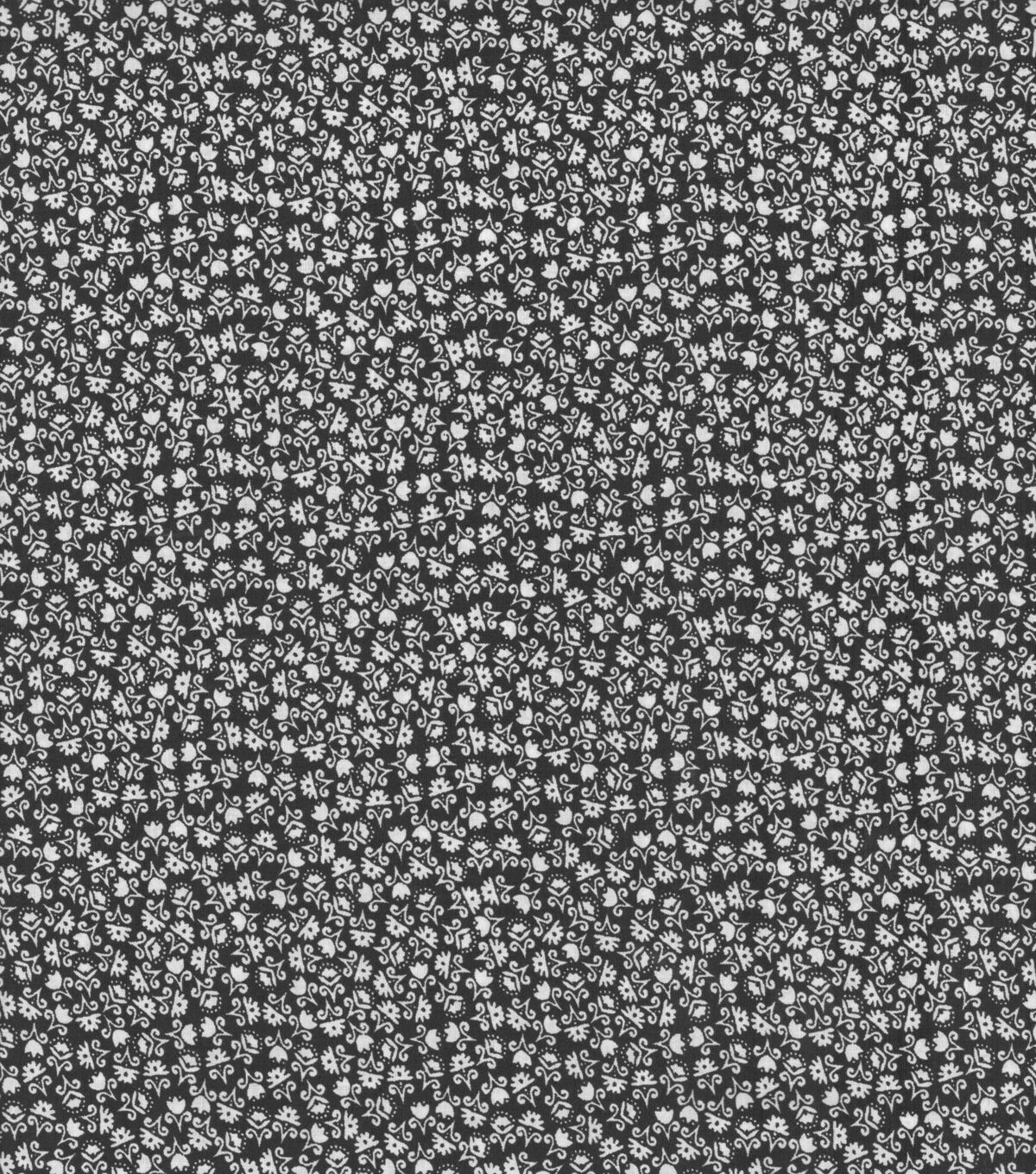 • White Ditsy Floral on Black Quilt Cotton Fabric by Quilter's Showcase