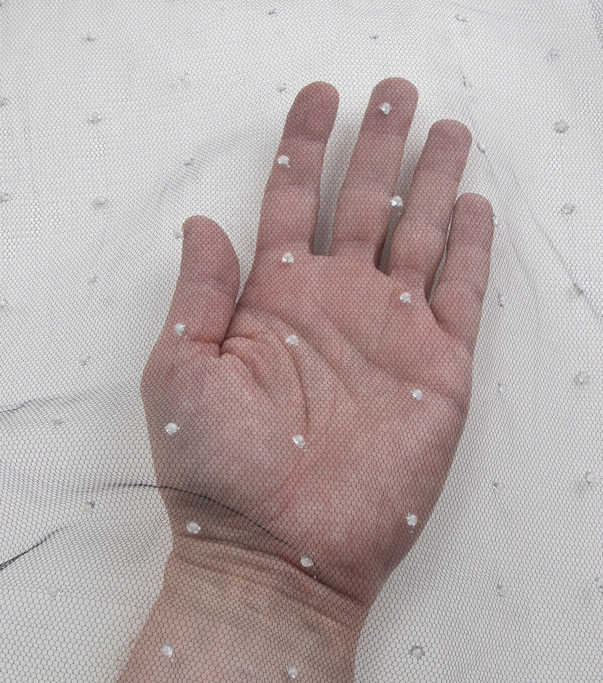 • White Dots On Black Glow in The Dark Mesh Fabric by The Witching Hour