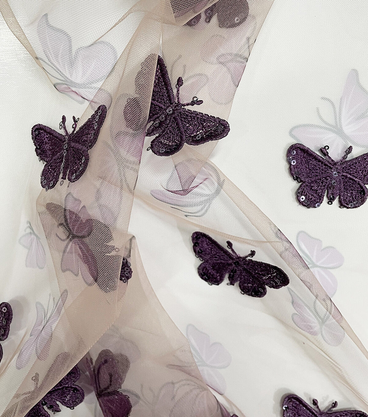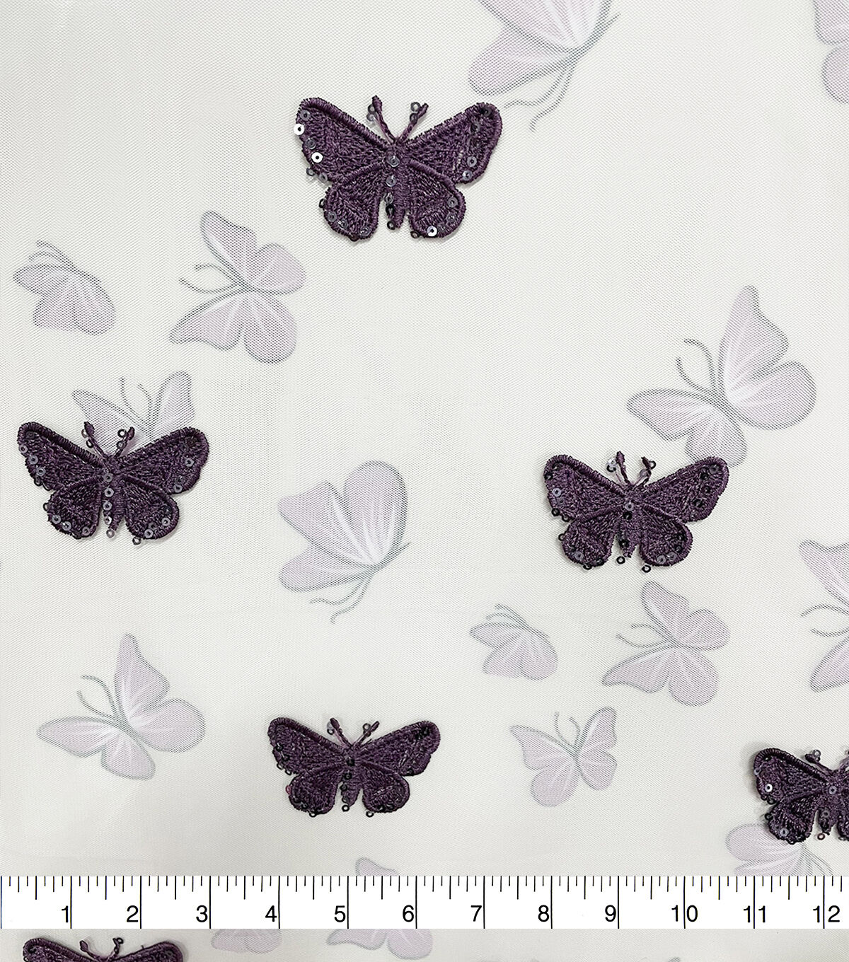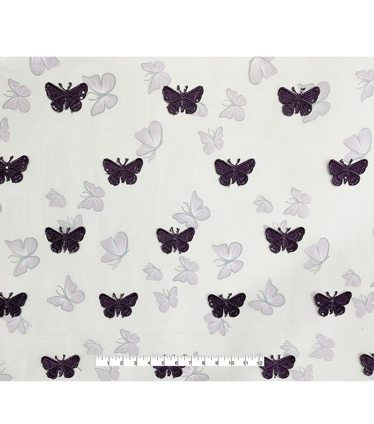 • White Embroidered Sequin Butterfly Mesh Fabric by Sew Sweet