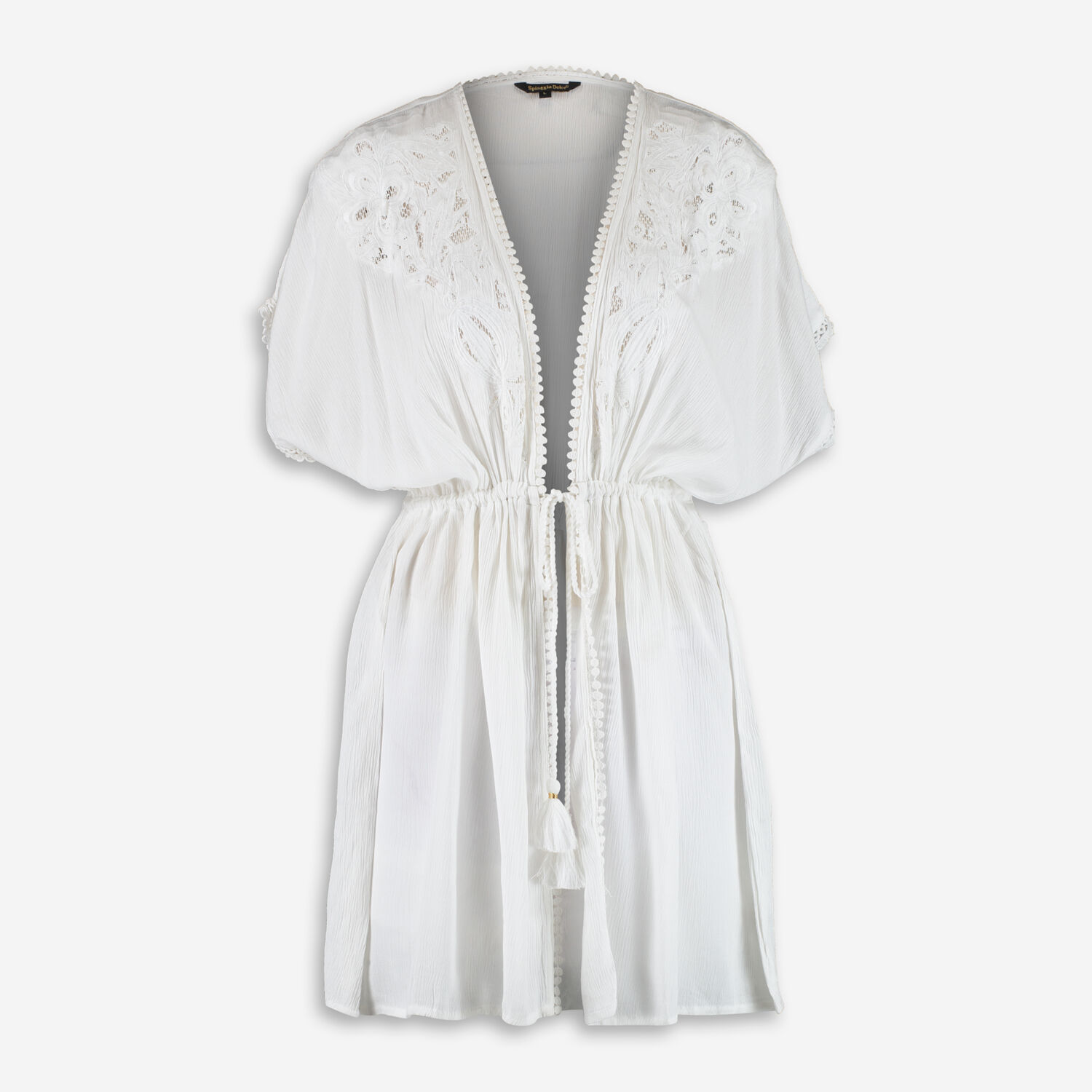 • White Floral Embroidered Kimono