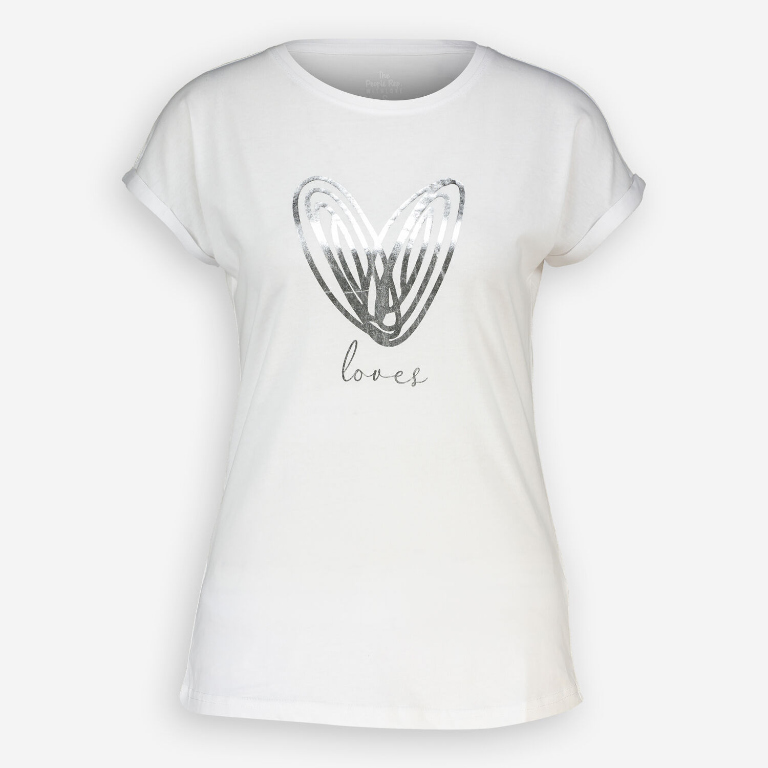 • Silver foil heart graphic