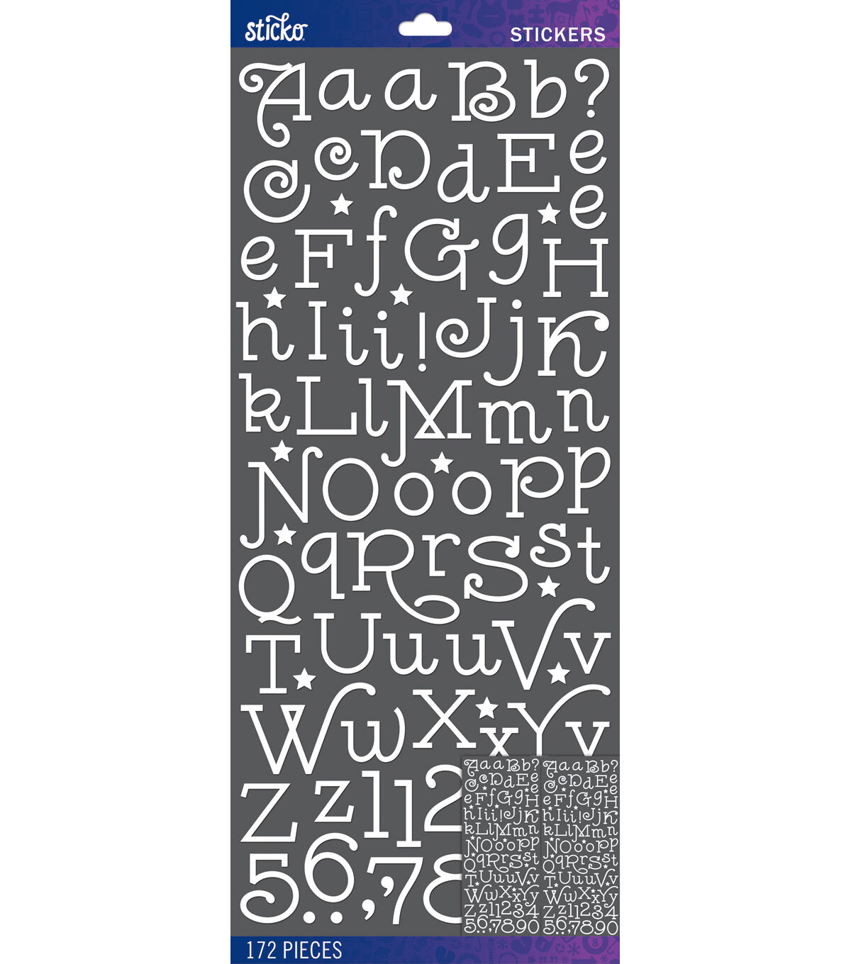 - Includes capital and lowercase letters, numbers, and symbols, in sparkly glitter.