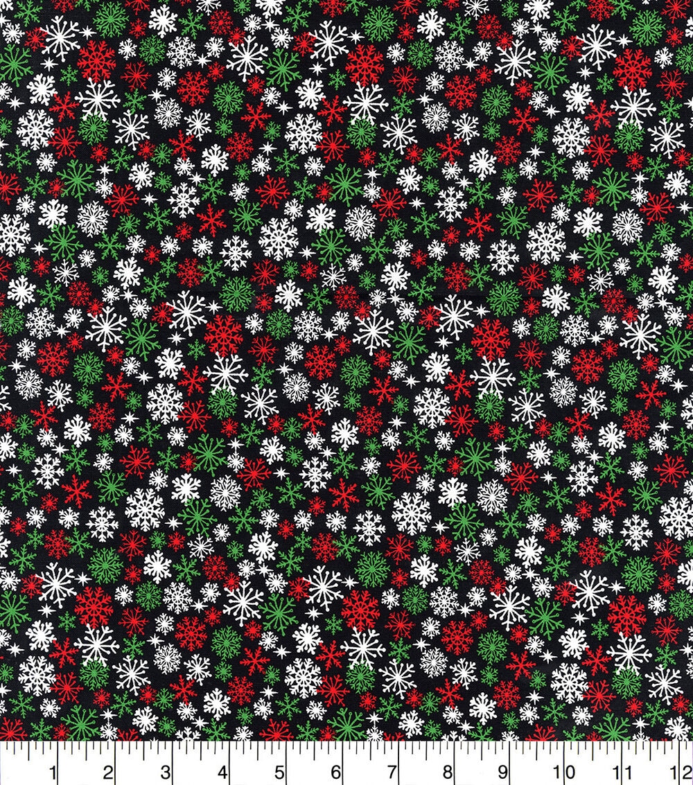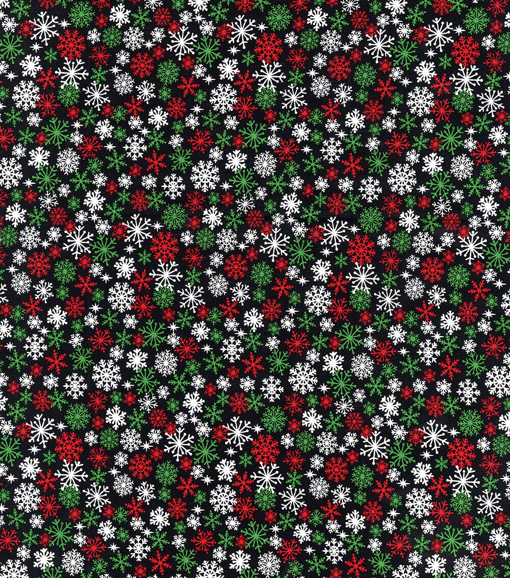 White & Green Packed Snowflakes Christmas Cotton Fabric