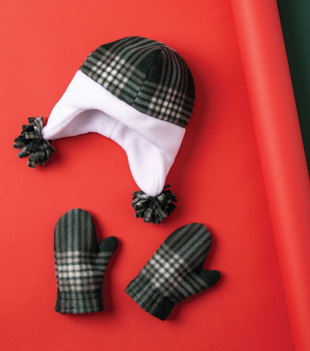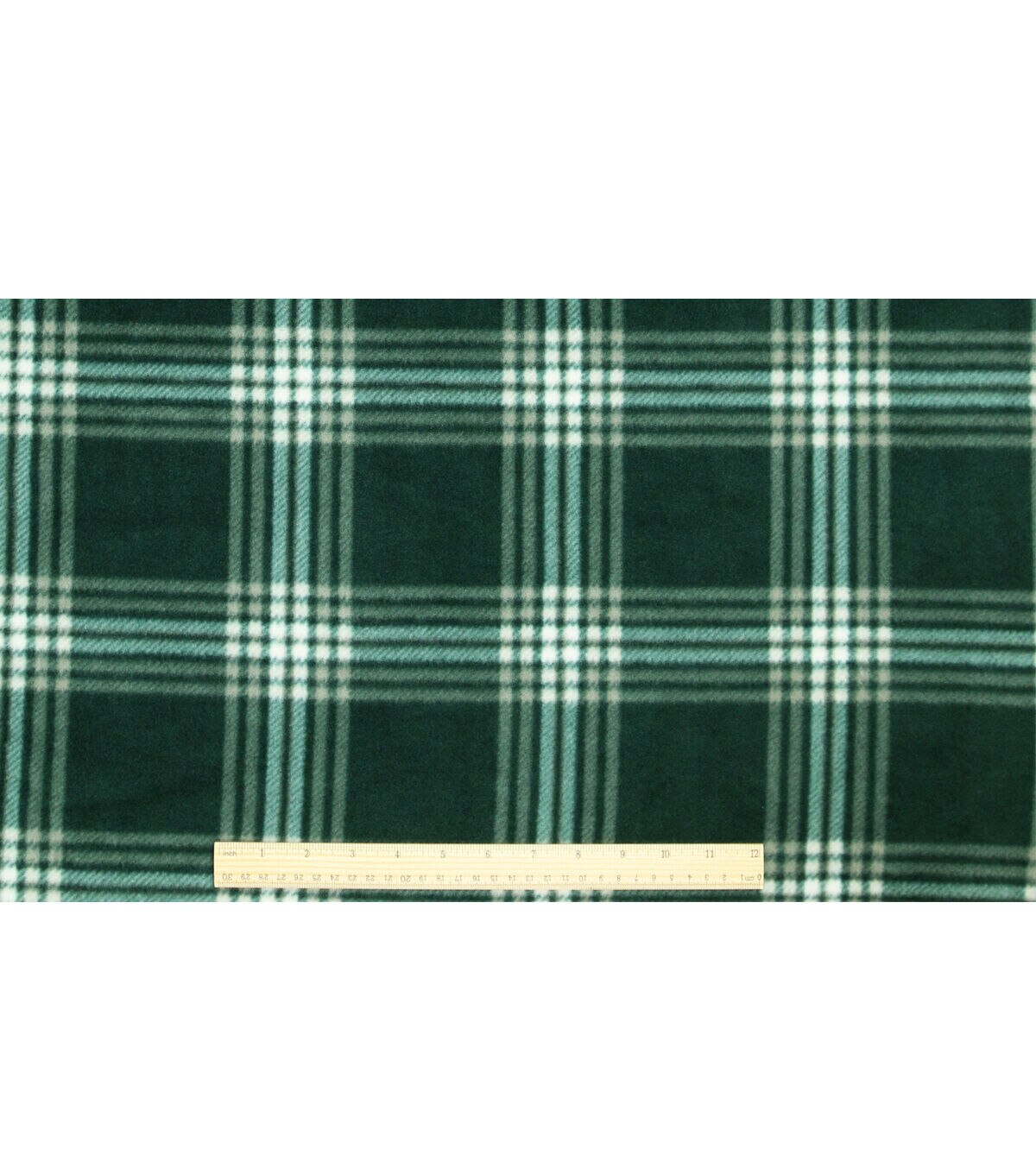 • White & Green Plaid Anti Pill Fleece Fabric