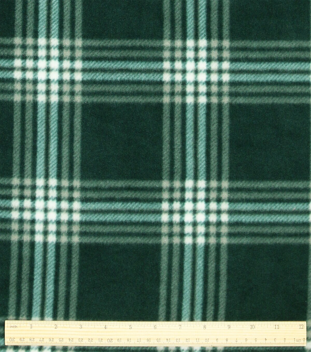 White & Green Plaid Anti Pill Fleece Fabric
