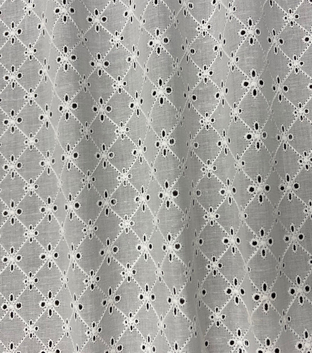 What better way to bring simplistic designs to your wardrobe and home decor than patterned cotton, like these floral eyelet designs for the feeling of spring? This fabric is attractive for its comfort, easy care, and easy sewing. You will always relish in the breathability of the material and how natural it feels to the skin. Enjoy.