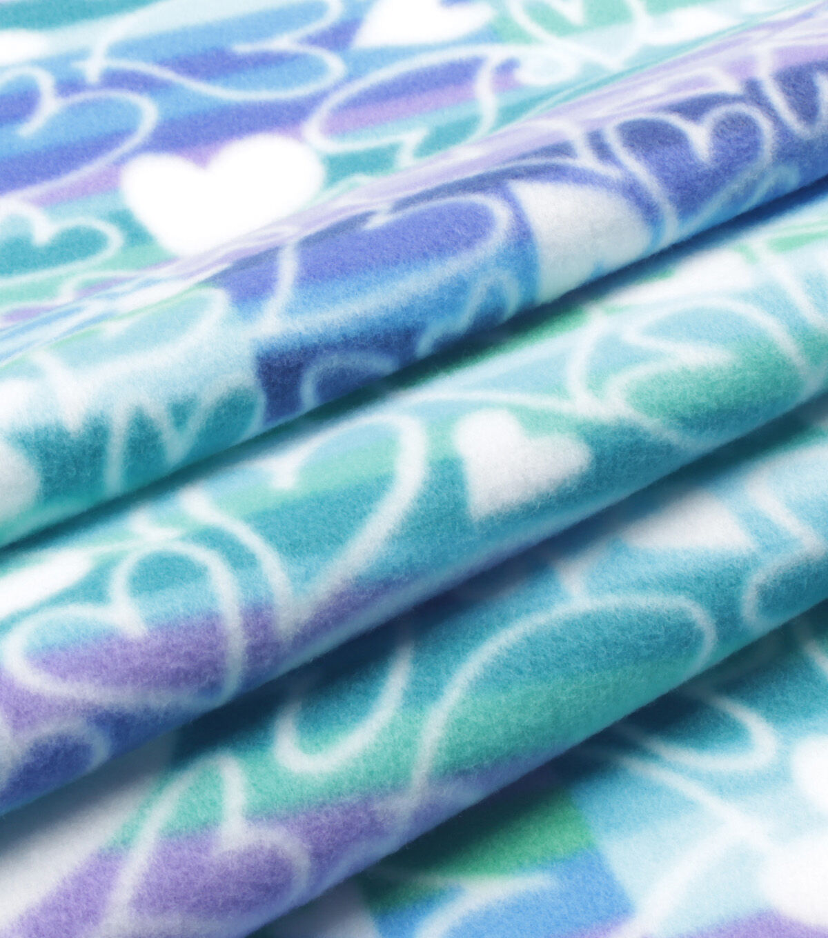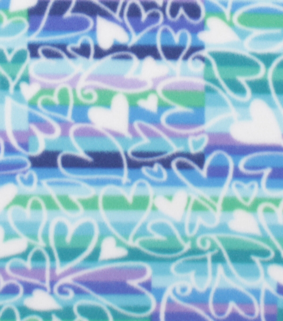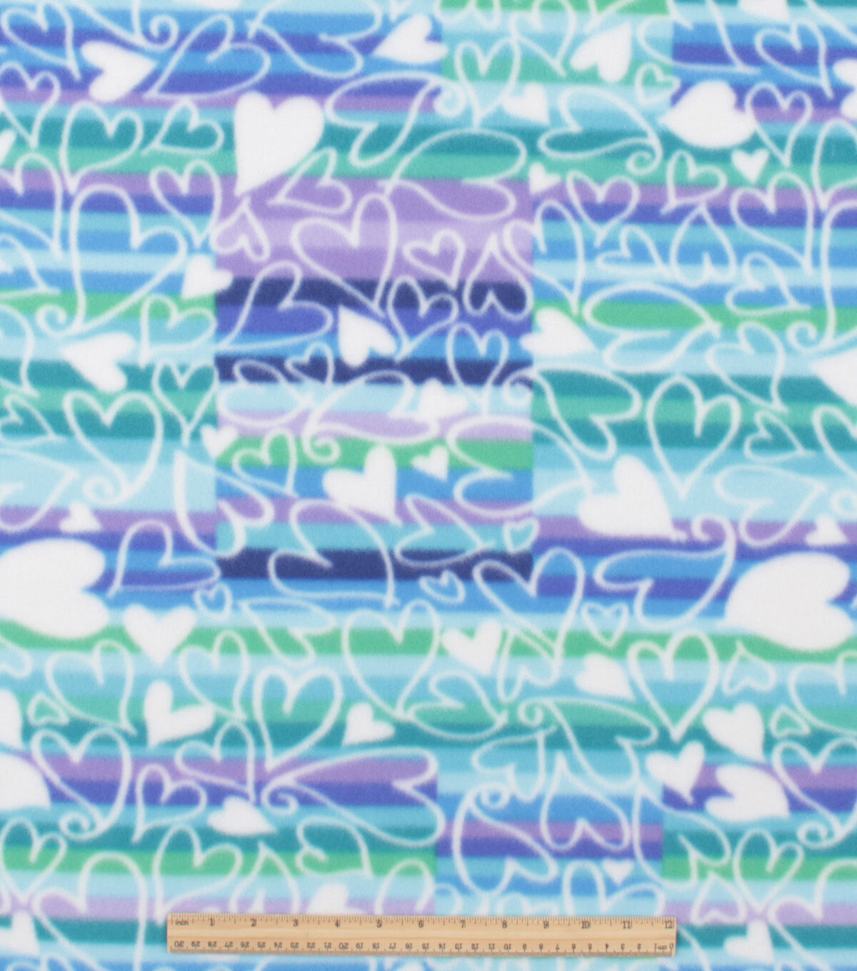 • White Hearts on Cool Multi Blizzard Fleece Fabric