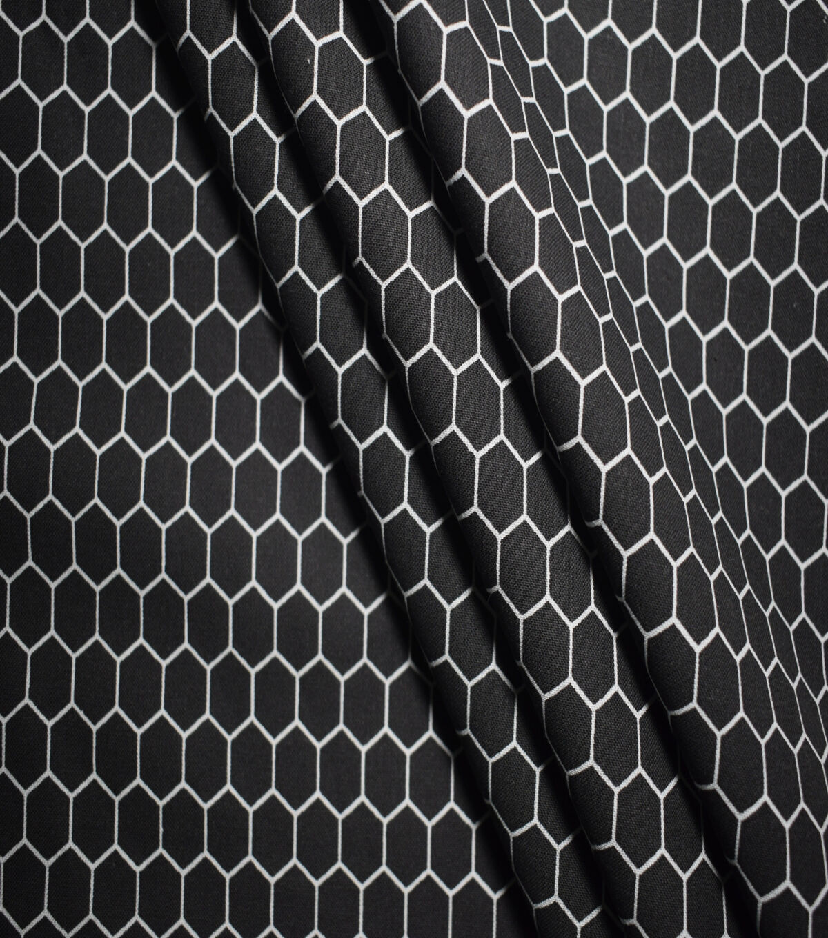 White Honeycomb on Black Quilt Cotton Fabric by Quilter's Showcase