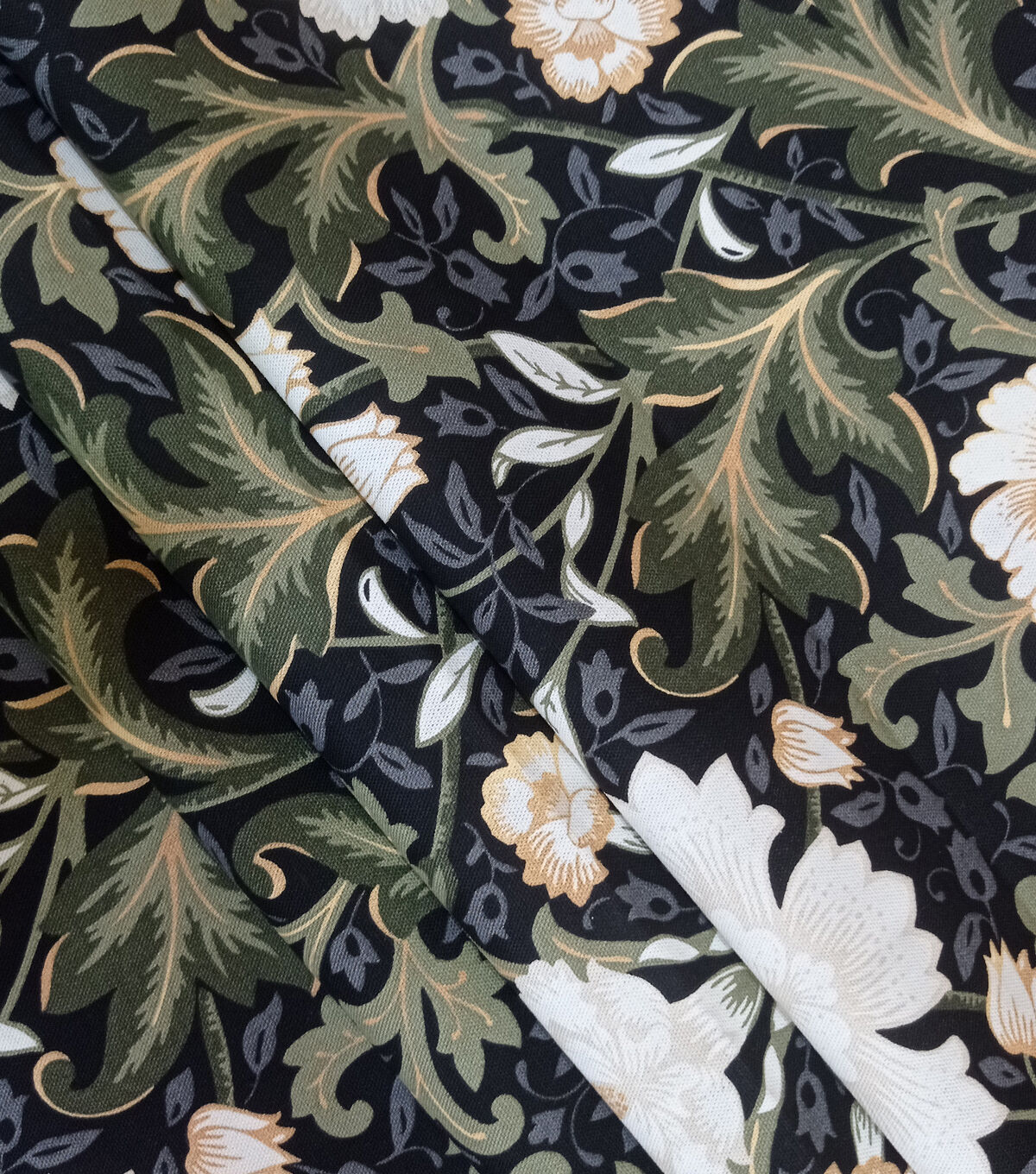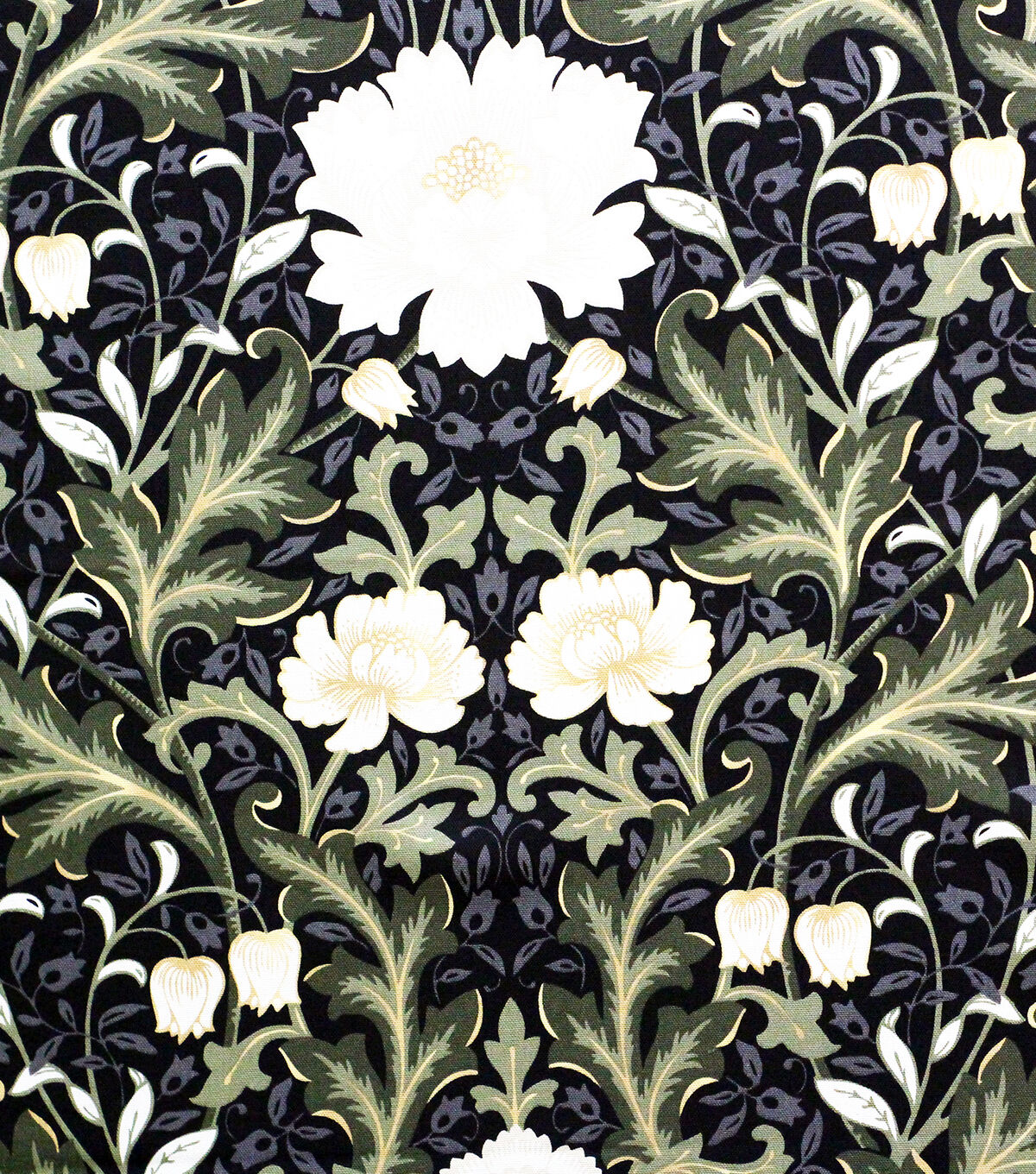 • White Lotus on Black Cotton Canvas Fabric