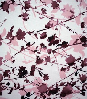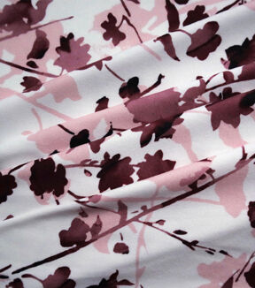 • White & Pink Layered Stems Jersey Knit Fabric
