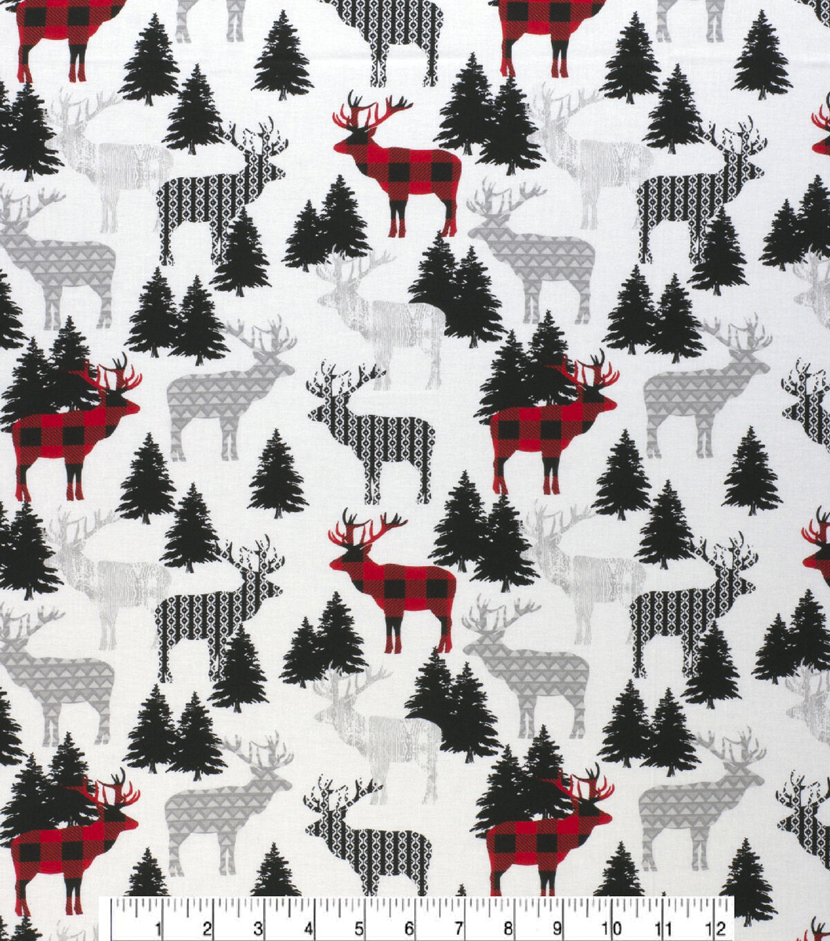 White & Red Pattern Trap Deer Christmas Cotton Fabric