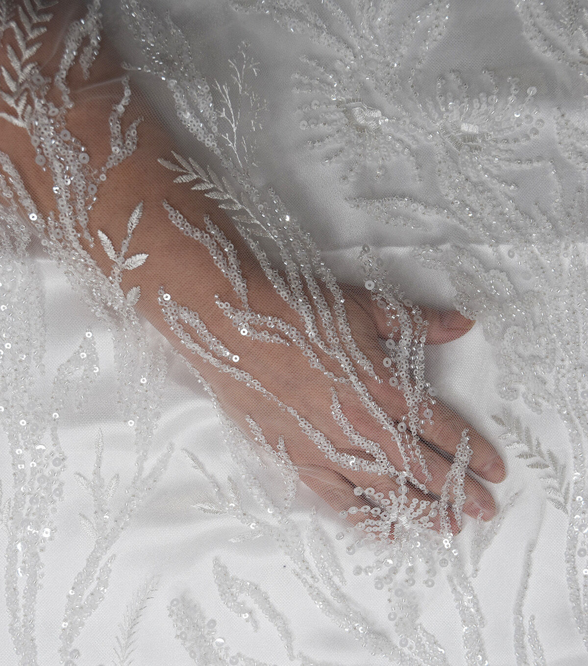 Add some sparkle to your wardrobe with our Mauve Sequin Beaded Vines Mesh Fabric. This fabric features a beautiful vine pattern adorned with sequins and beads, perfect for creating a statement piece for your next special occasion. With a width of 51 inches, this fabric is versatile and can be used for a variety of projects. The content is 100% polyester, making it easy to care for. Simply hand wash cold, use nonchlorine bleach if needed, line dry and do not iron. This imported fabric is sure to add a touch of elegance to your next project.