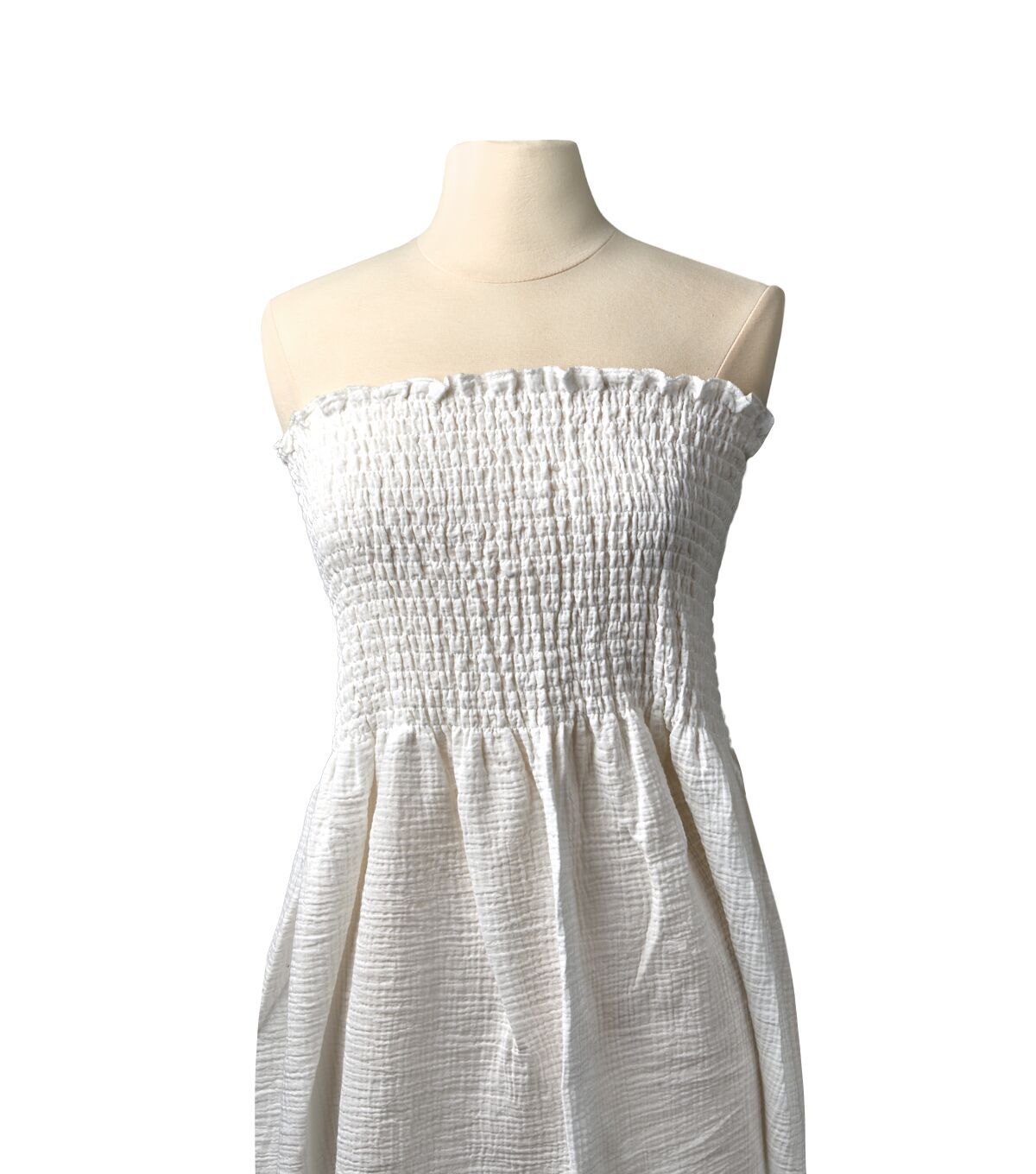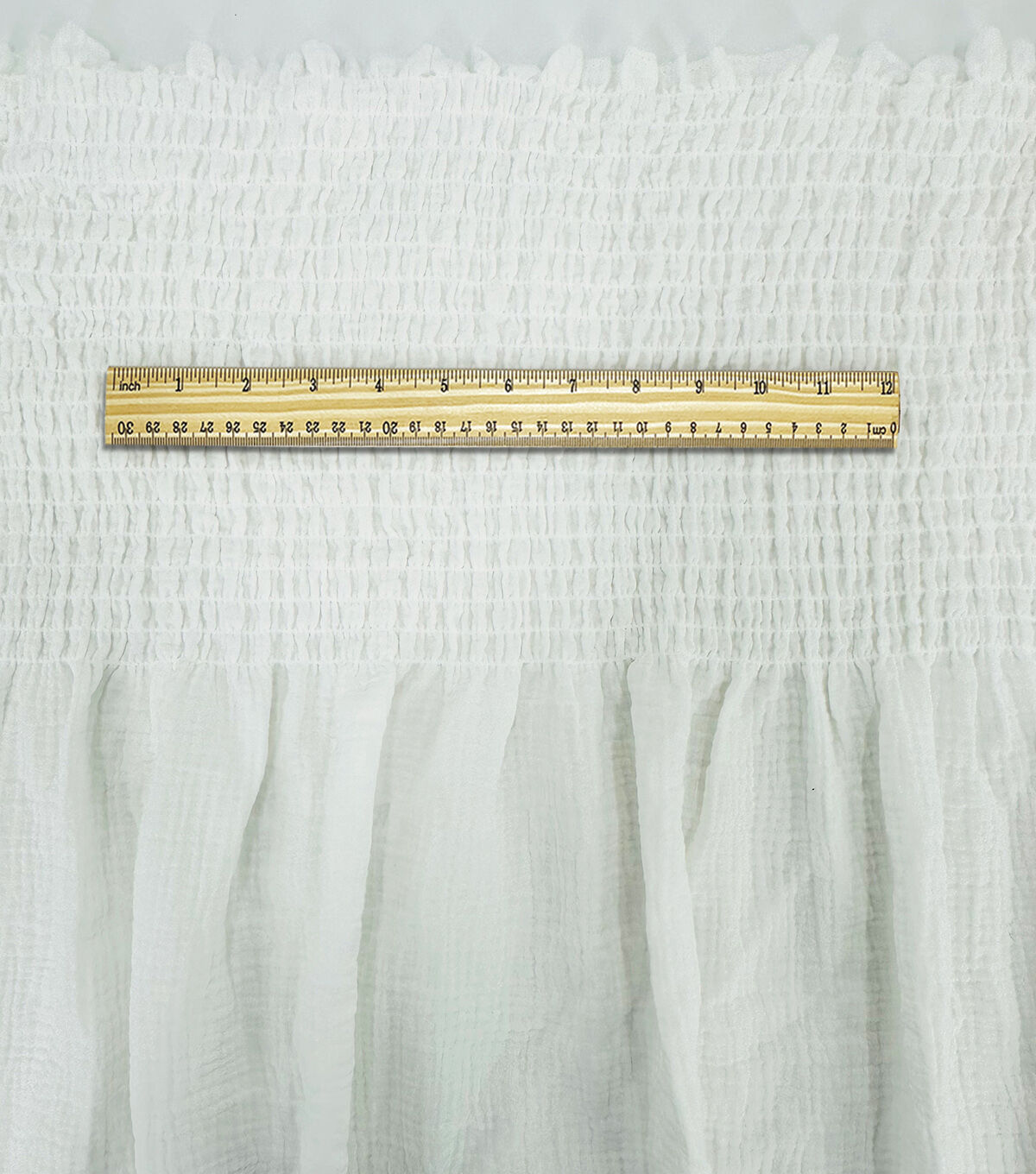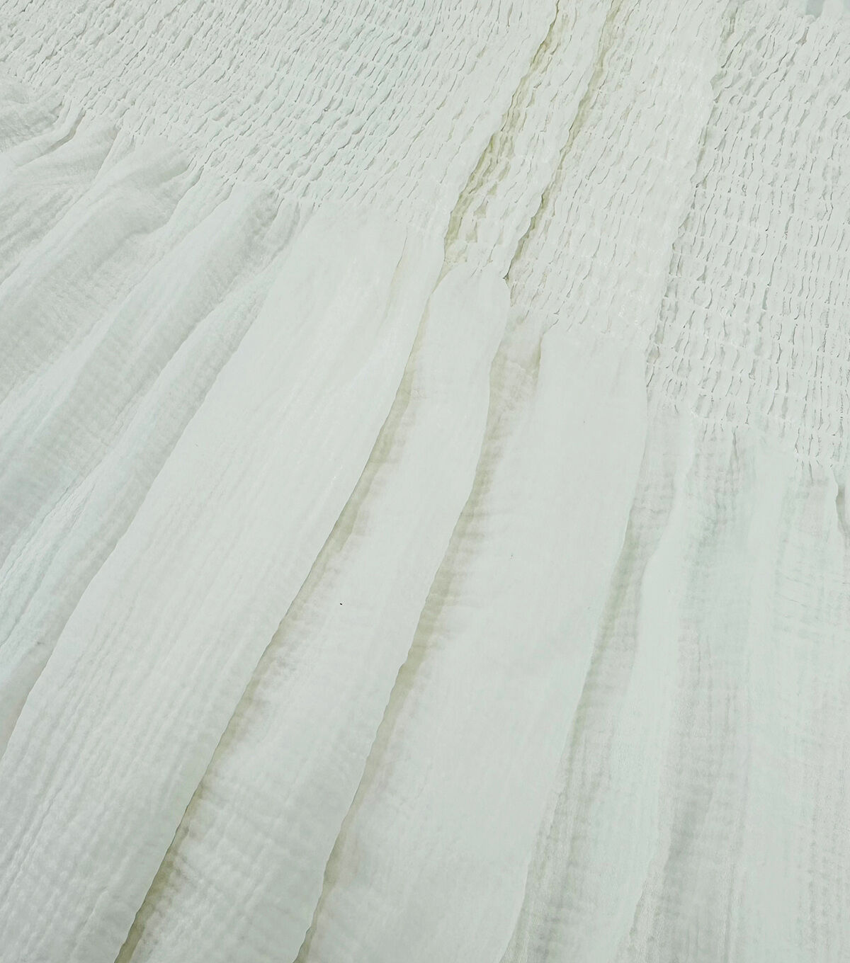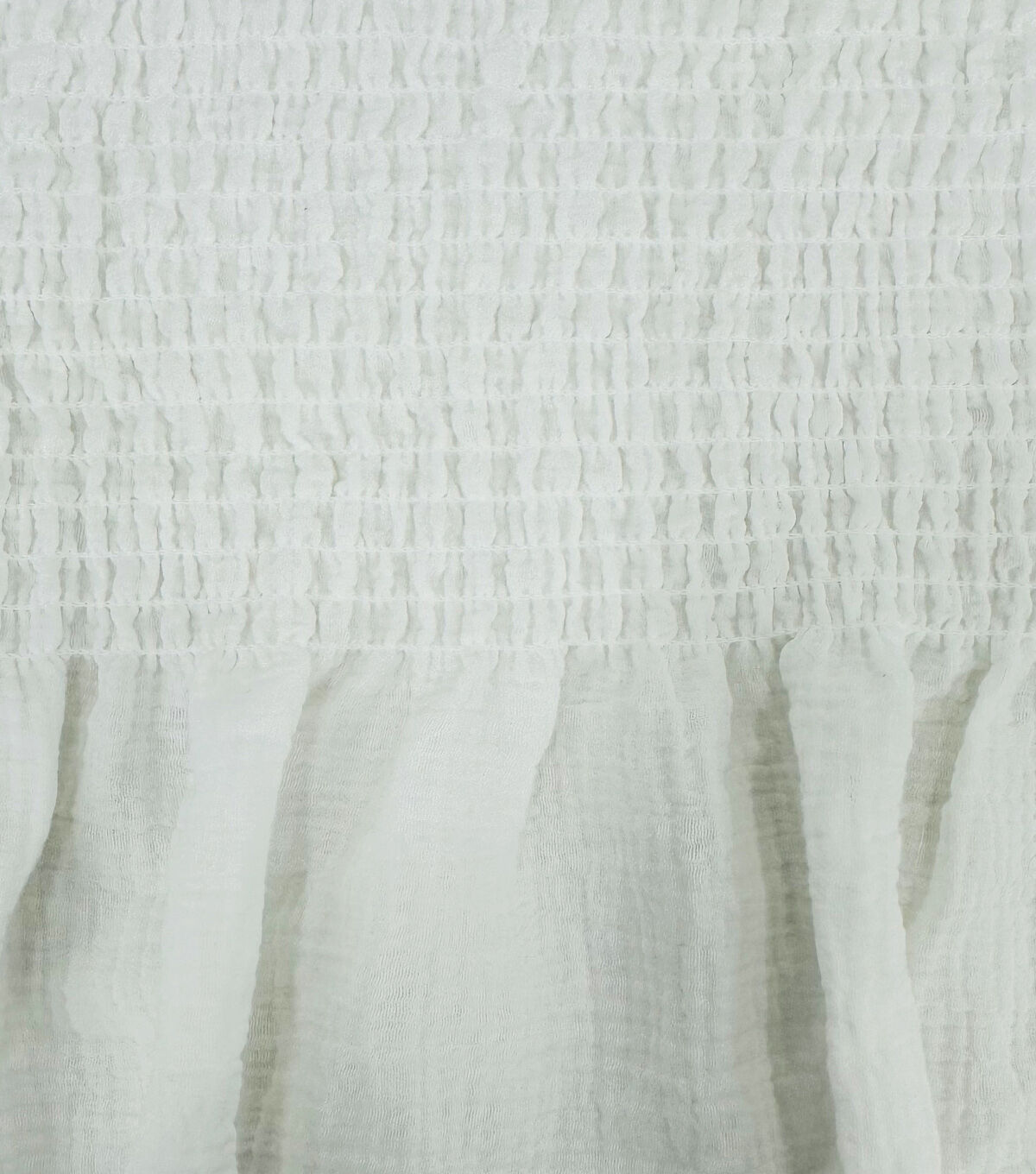 Elevate your sewing projects with our White Smocked Bubble Gauze Fabric. Made with 100% cotton, this fabric is perfect for creating lightweight and breathable garments for any season. The unique smocked bubble texture adds a touch of whimsy and dimension to any design. Whether you're making a flowy summer dress or a cozy blanket, this fabric is versatile and easy to work with.