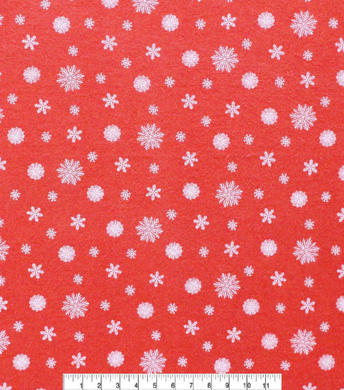 • White Snowflakes on Red Super Snuggle Christmas Flannel Fabric