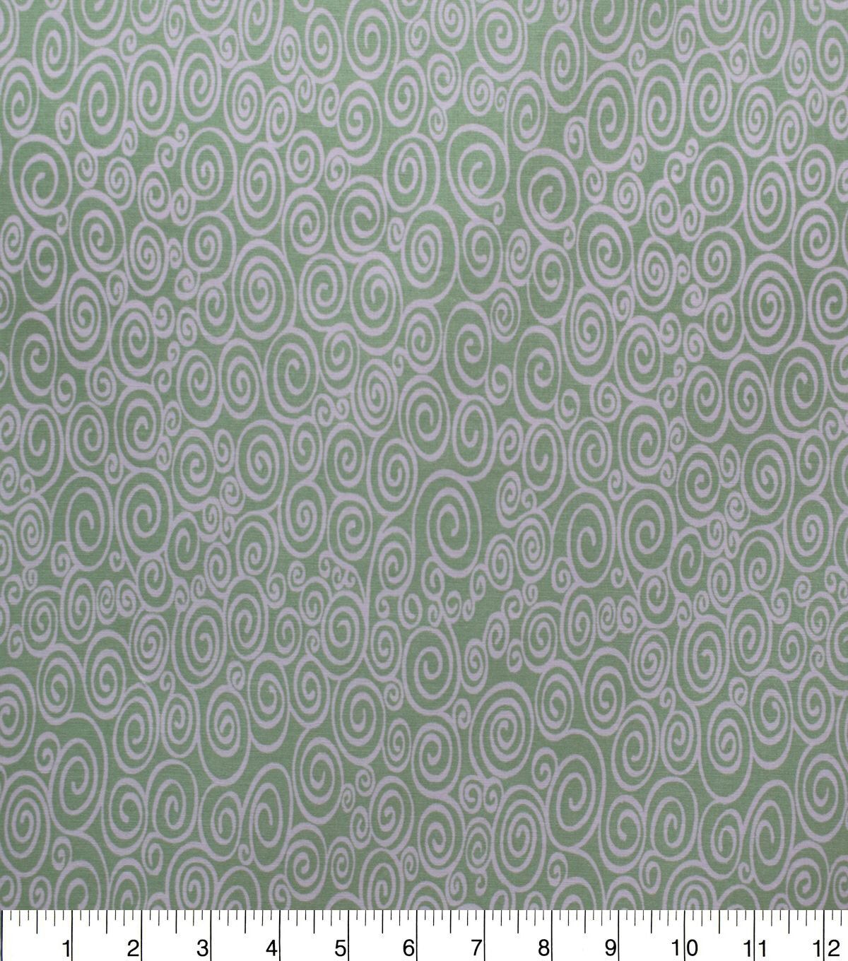 • White Swirls on Light Green Quilt Cotton Fabric by Quilter's Showcase