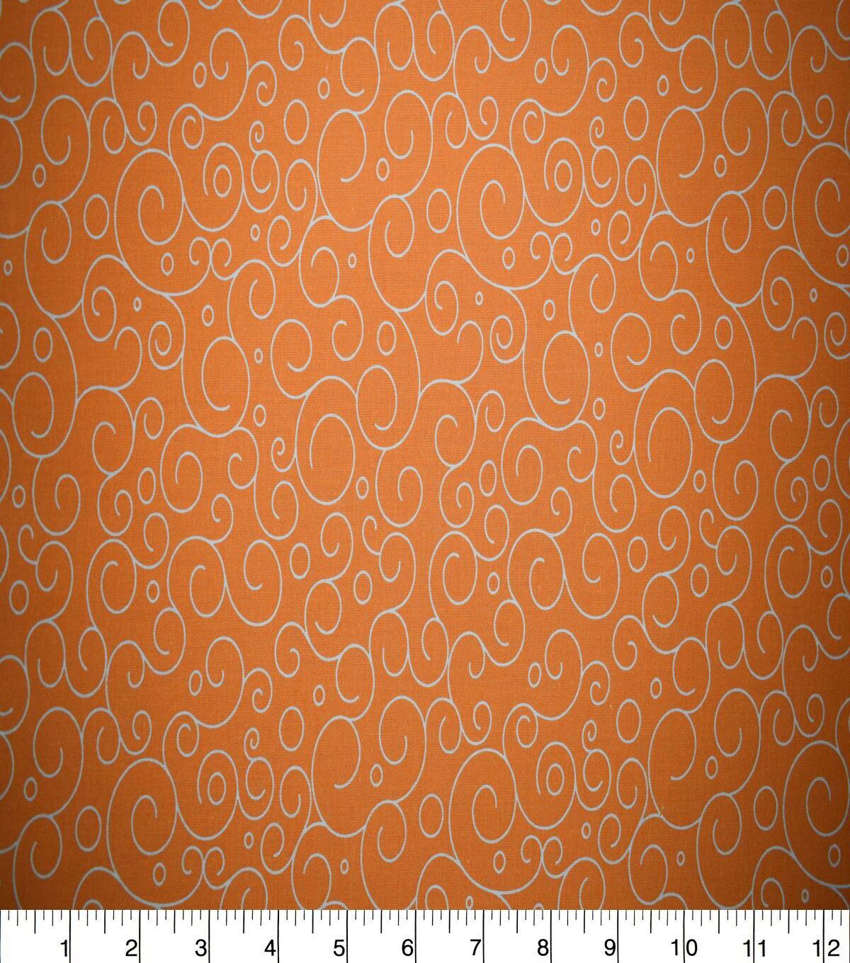 • White Swirls on Orange Quilt Cotton Fabric by Quilter's Showcase