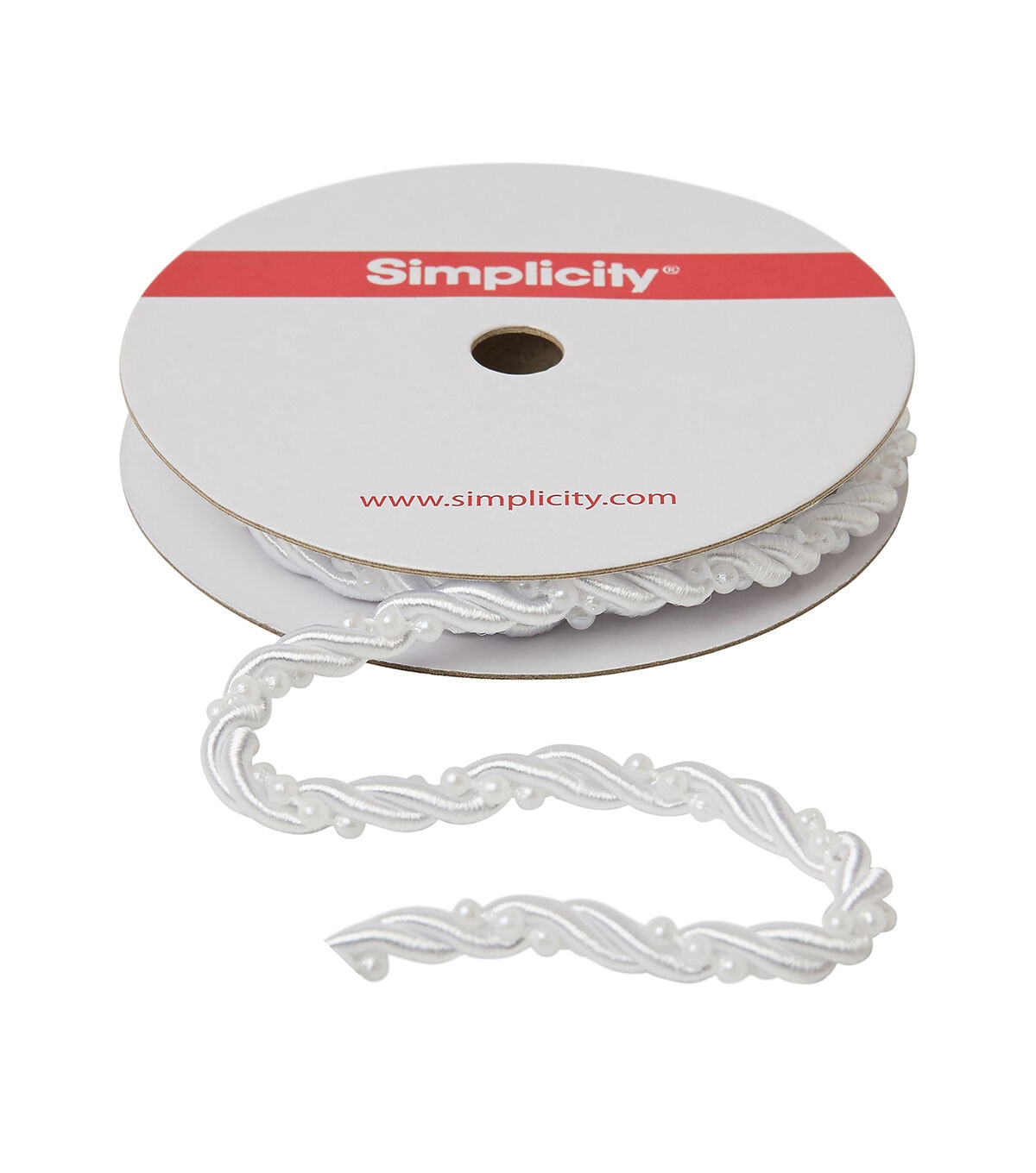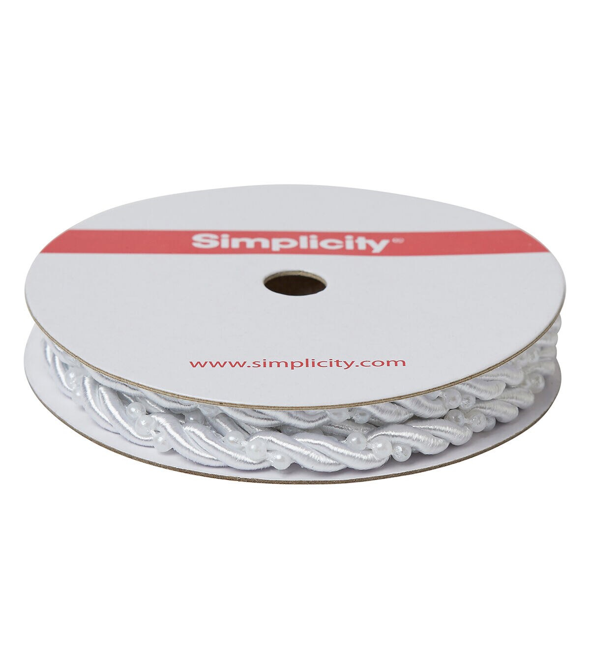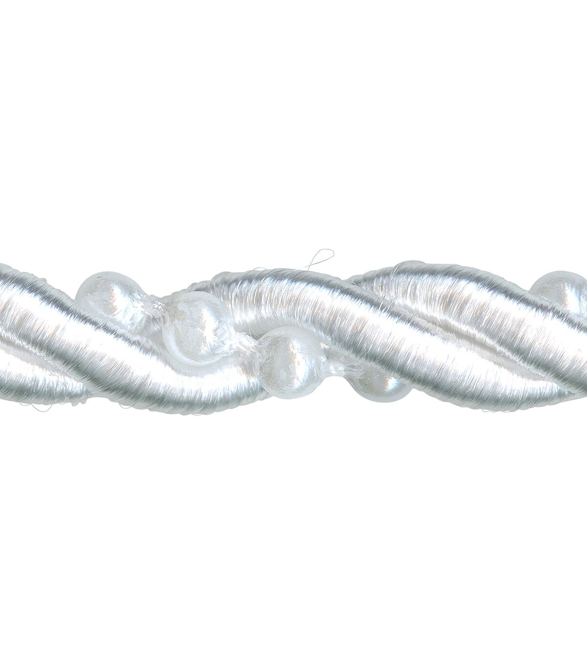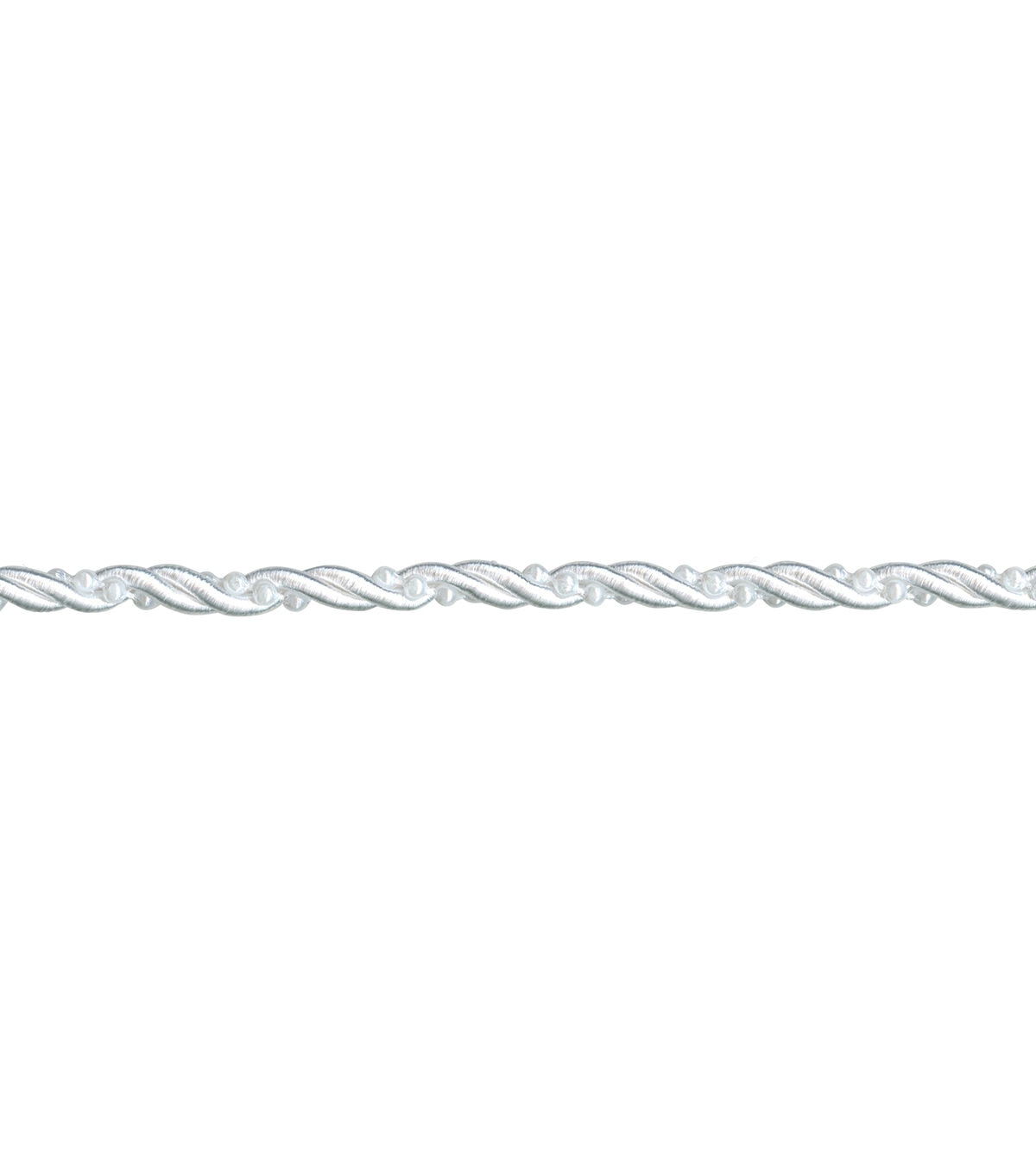 This elegant 1/4 inch white twisted cord trim with pearls is a cotton/polyester blend. Use this elegant trim for apparel design, home décor inspirations and so much more!
