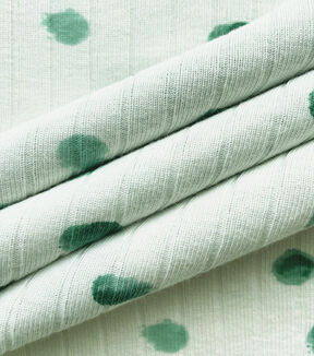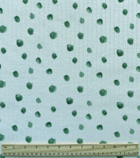White Watercolor Green Dots Drop Needle Fabric