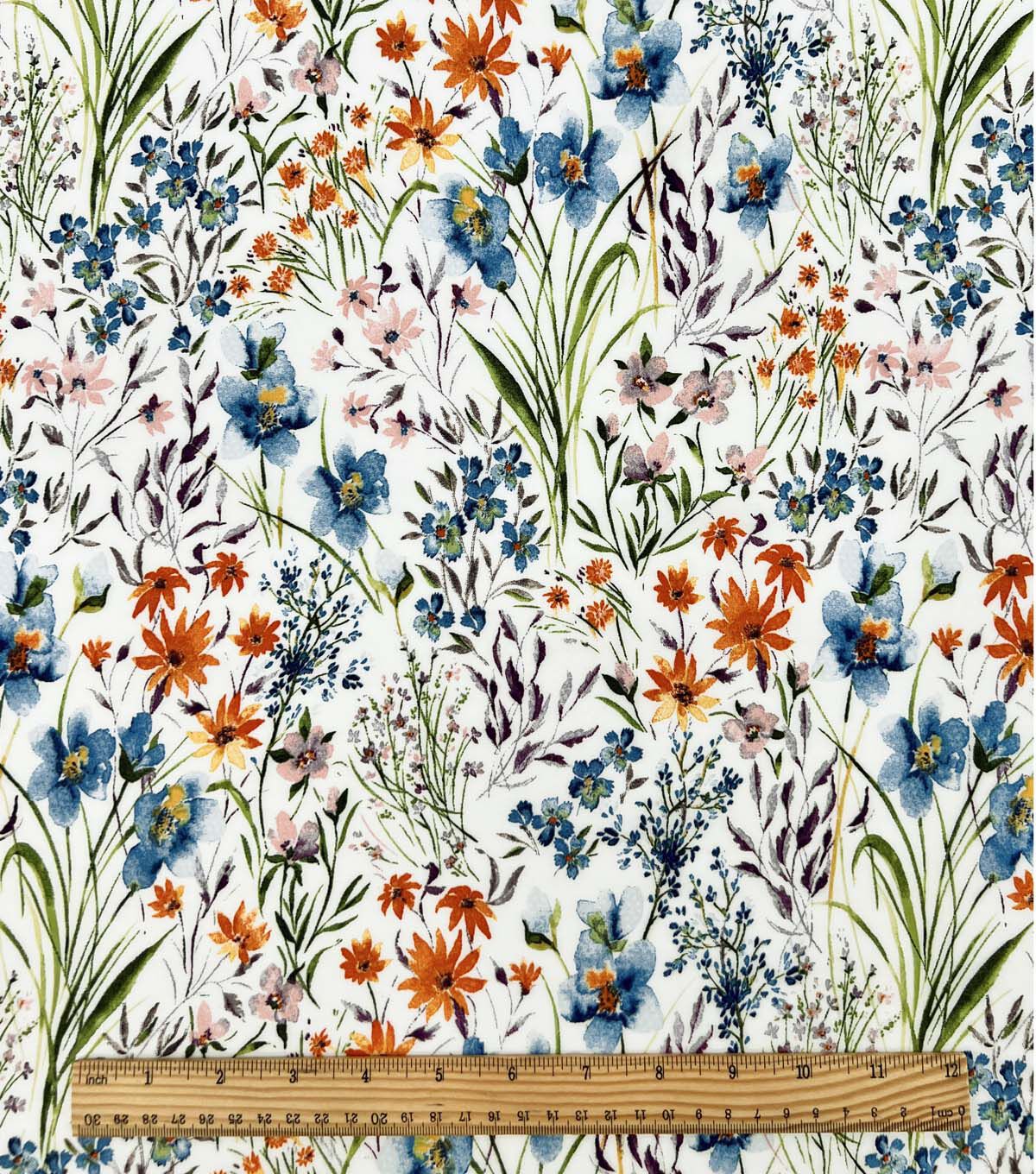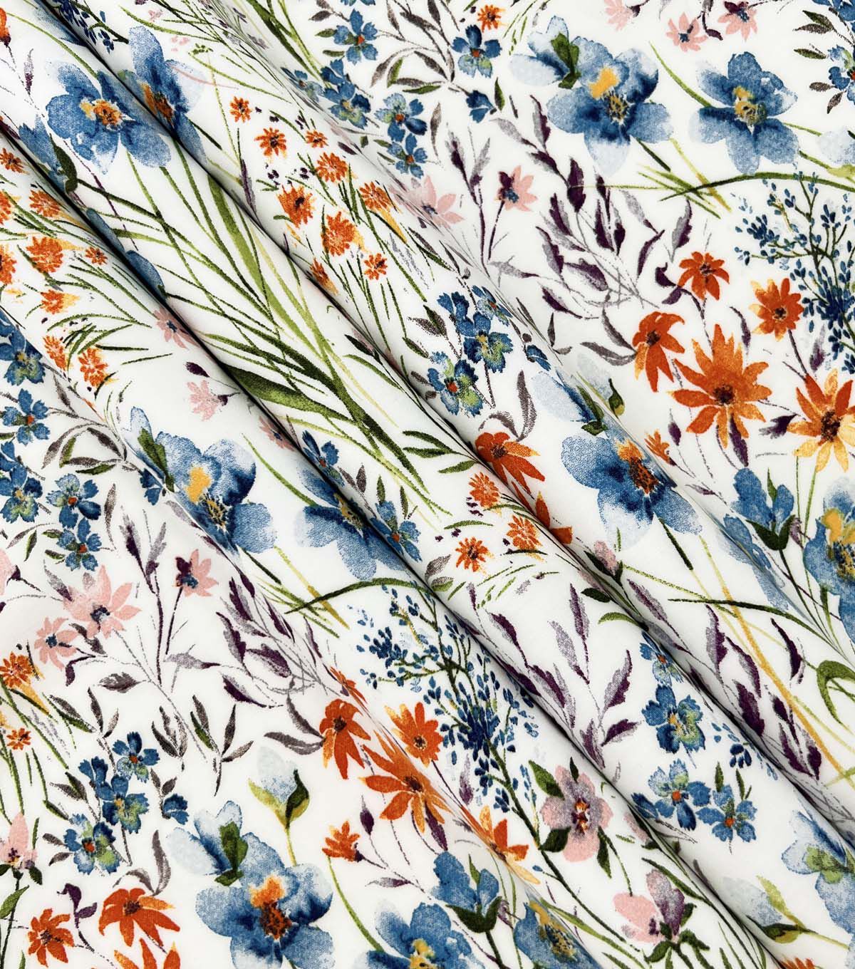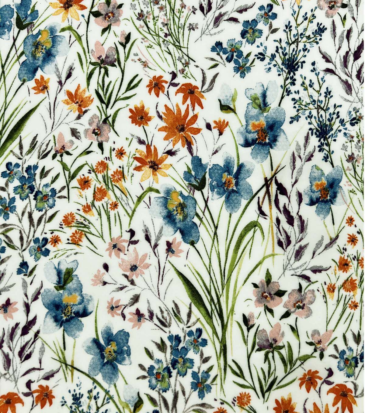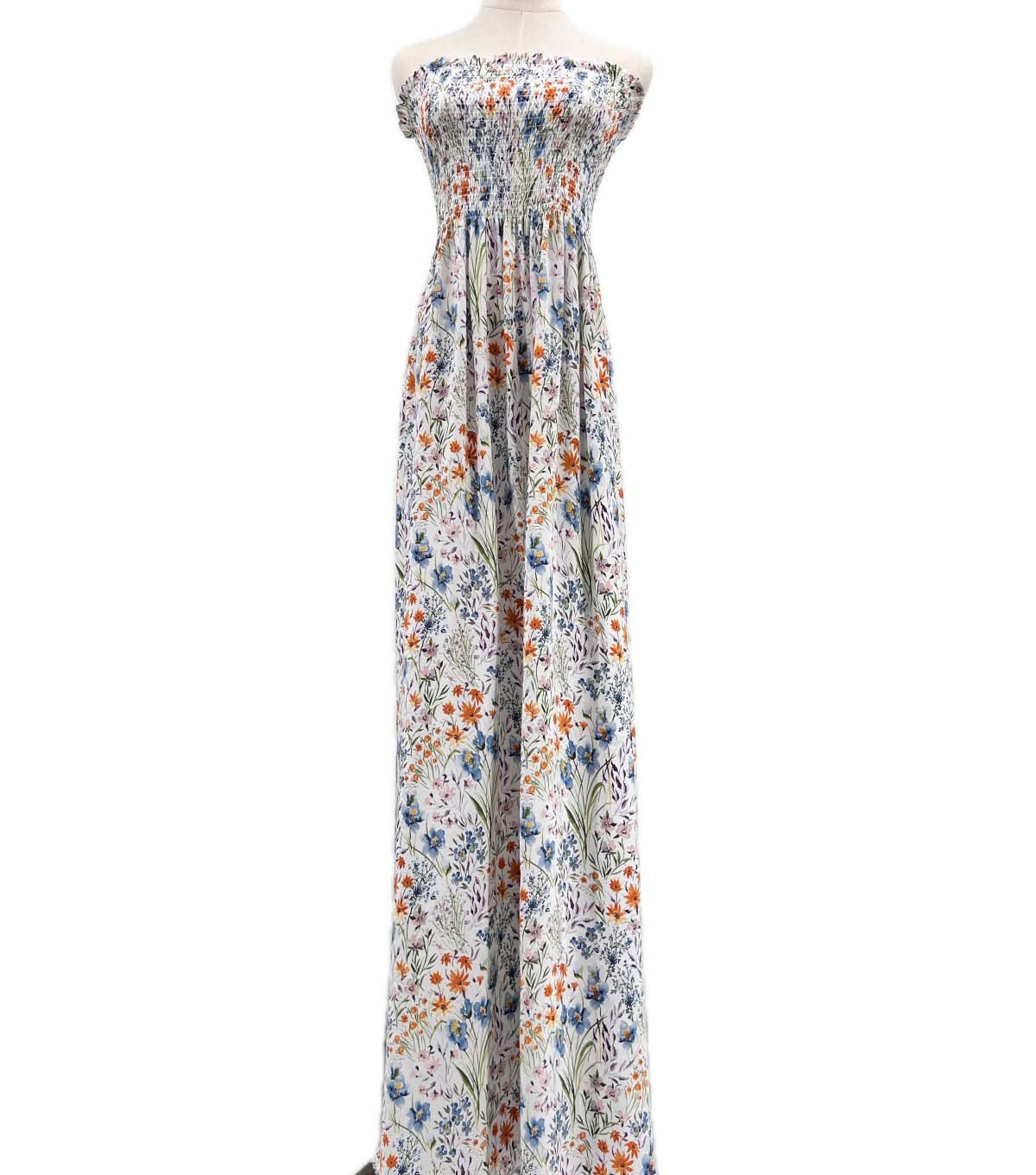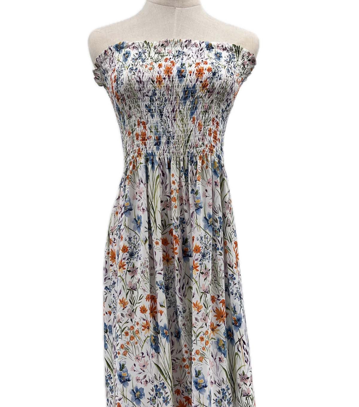 Get Ready for Spring with our Wild Flowers on White Smocked Rayon Challis Fabric