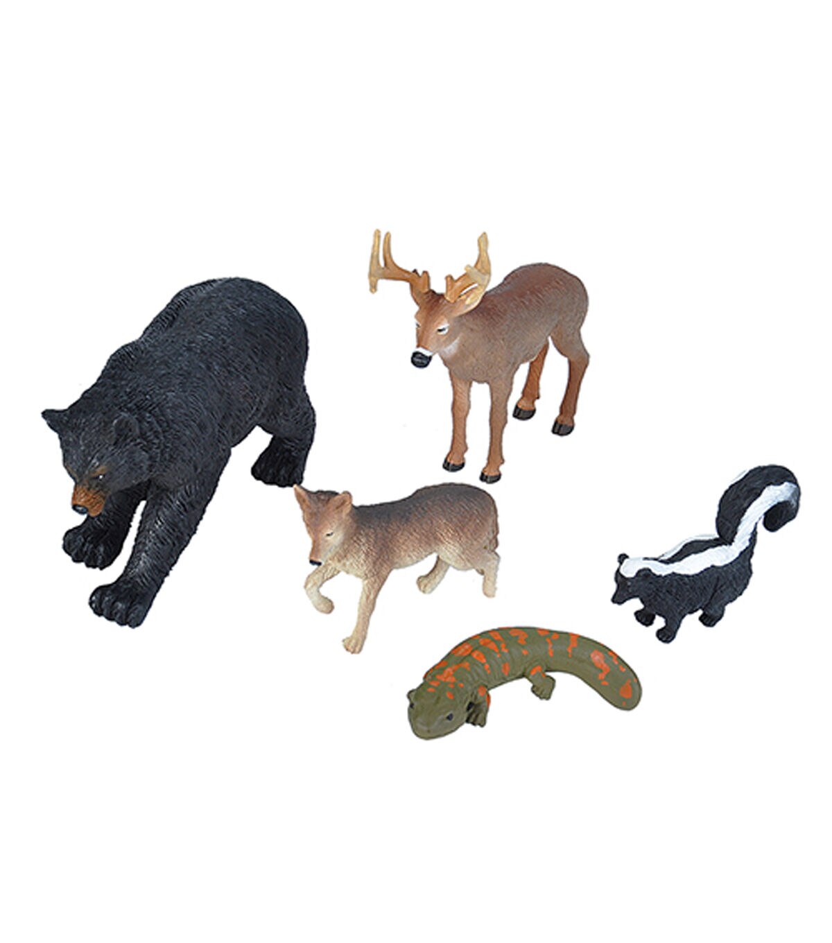 - Five highly detailed and durable Wilderness pieces are a Skunk, Black Bear, Deer, Coyote, and Salamander