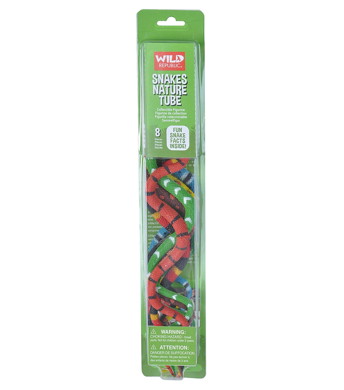 Explore the world of reptiles with this Wild Republic Snakes Nature Tube. It comes with an assortment of durable, high quality and lightweight replicas of various snakes in a reusable tube. The little ones will have hours of endless adventure, learning and having fun exploring different varieties of snakes. This tube includes eight pieces. All plastic toys made from 100% phthalate-free plastics.