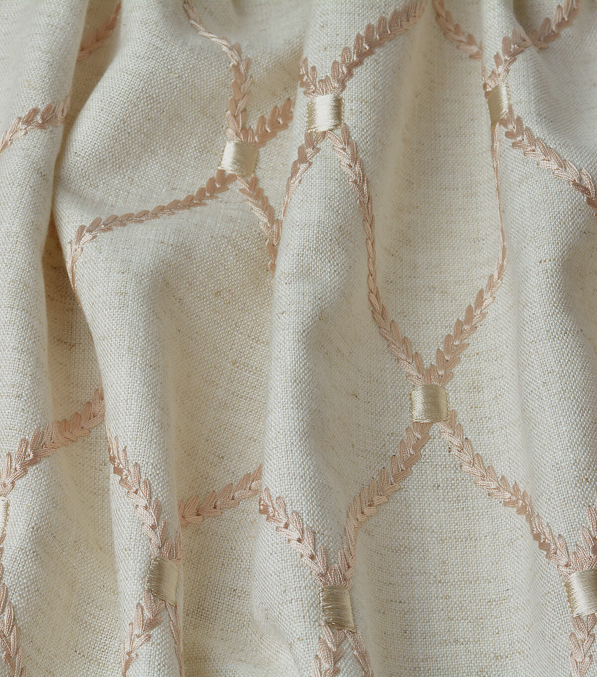Deane Embroidery is a beautiful scrolling pattern by Williamsburg. Named for famed Irish coachmaster, Elkanah Deane, this classic lattice design is embroidered on a soft blen of rayon and line. This design offers a mix of classic and transitional design and will fit in any comtempory lifestyle.