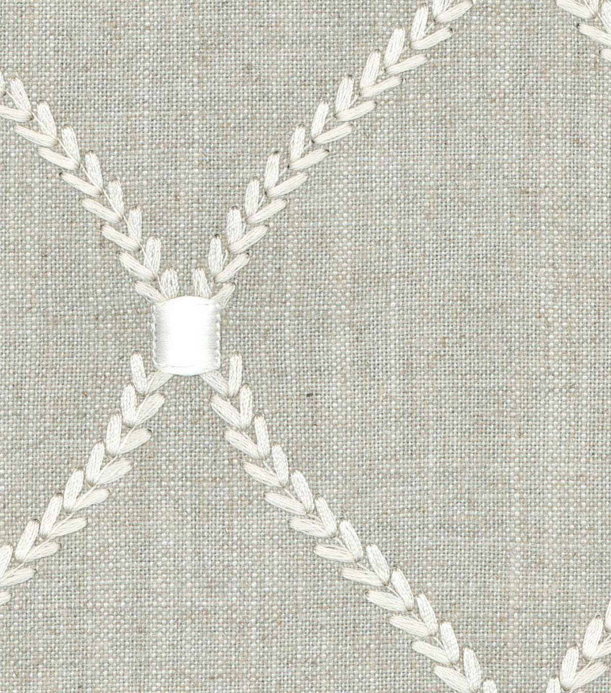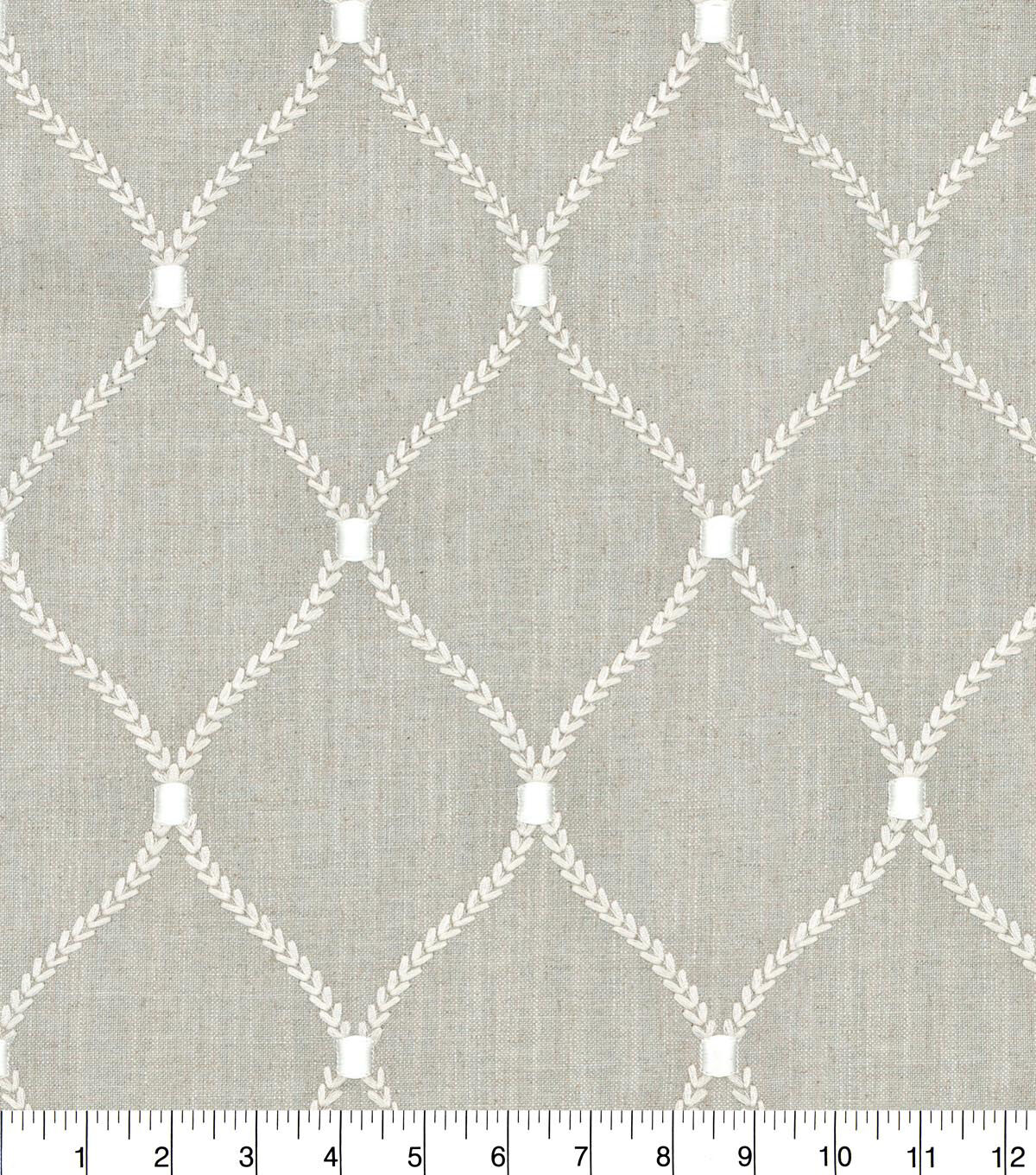 Infuse textural flair into your home decor scheme using the Williamsburg Upholstery Embroidered Fabric-Flint Deane. Made of a rayon and linen blend, it’s beautiful and durable. It’s designed with a lovely embroidered pattern that will enhance the look of your upholstered furniture. You can also use this medium upholstery fabric to sew slip covers, decorative pillows, bedspreads, tablecloths and more.