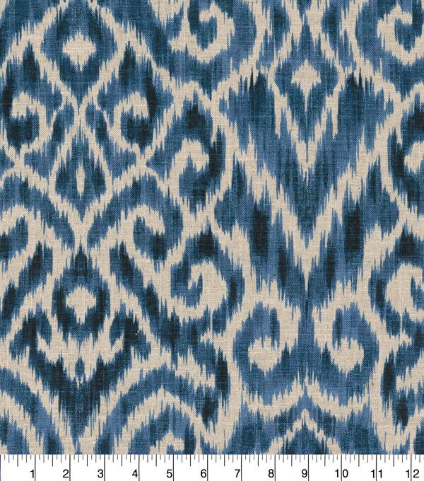 Infuse an exquisite look into your home decor using the Williamsburg Upholstery Fabric-Ink Thompson Ikat. This medium upholstery fabric features a beautiful ikat design for visual flair. It's made of linen and cotton, which makes it an ideal choice for curtains, table linens, sofa covers, pillowcases and so much more. Use blue sequins or jacquard ribbons to infuse an extra layer of charm into your sewing projects.