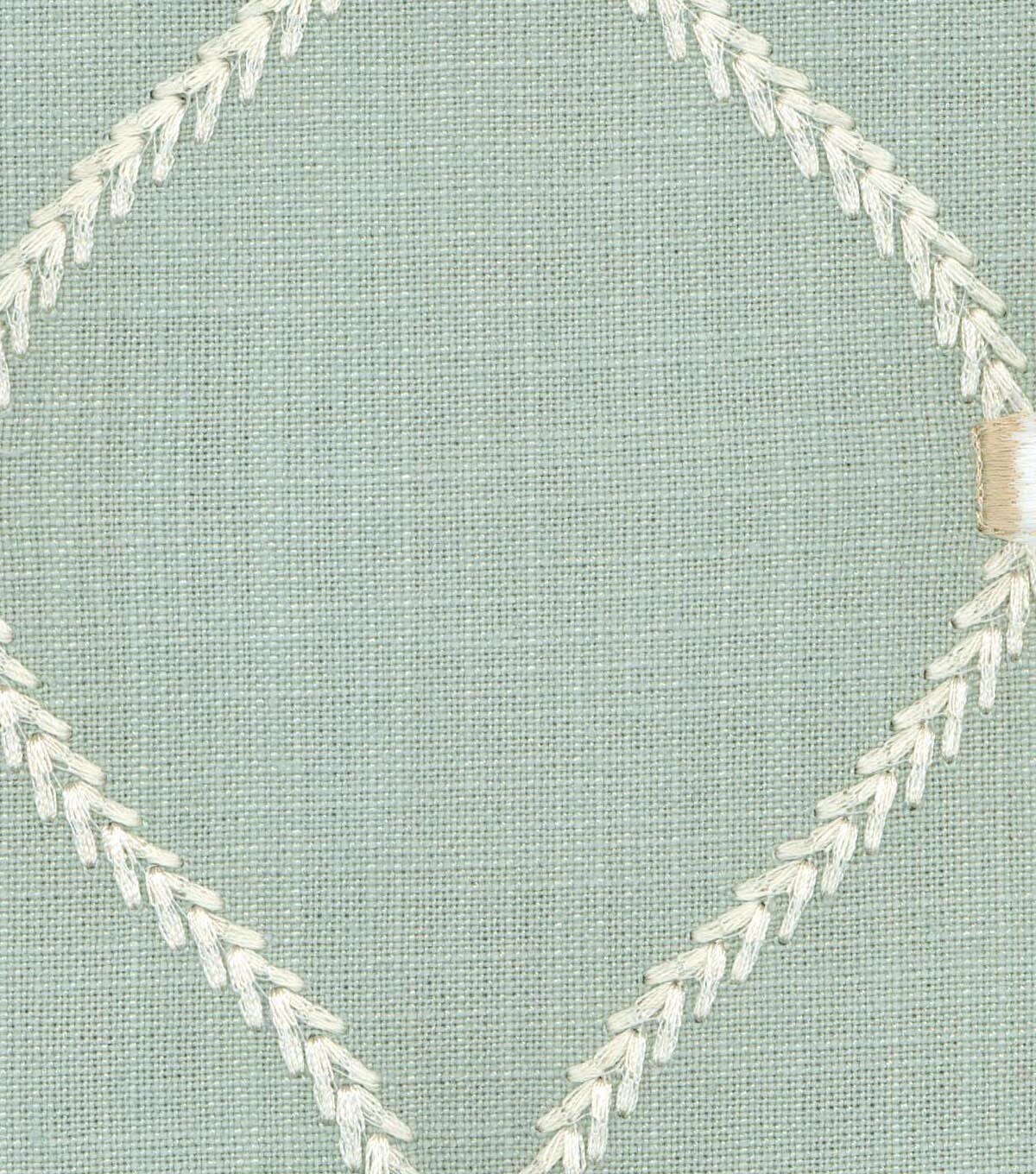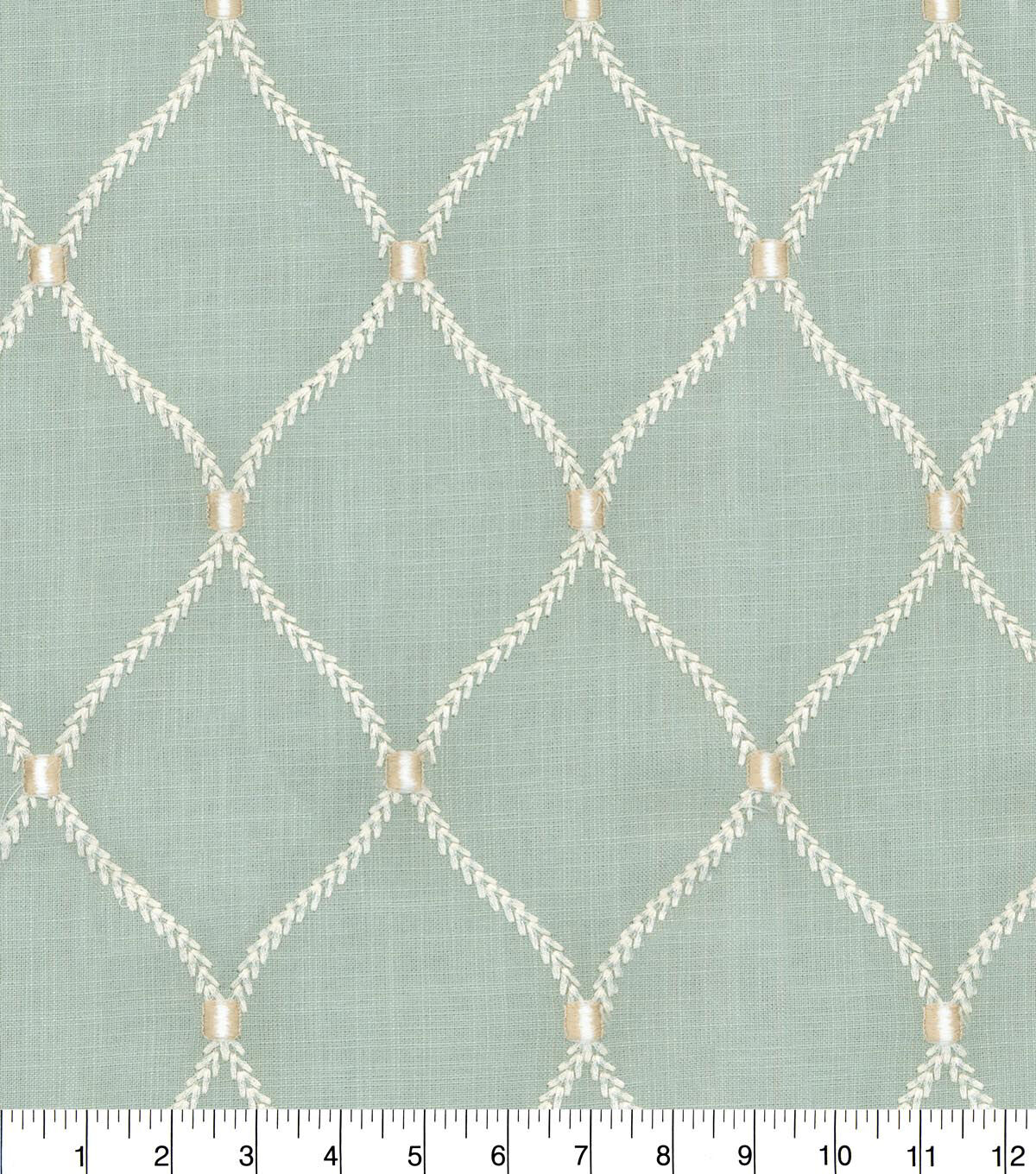 Use the elegant Williamsburg Upholstery Fabric-Shore Deane Embroidery for cushions, chair covers, draperies and lots more. Featuring a delicate embroidered design, this home decor fabric is made of linen and rayon for comfort and durability. This medium upholstery fabric features a durability of 27000 double rubs to increase the life of your projects. You can team it with other printed upholstery fabrics to add charm to your projects.