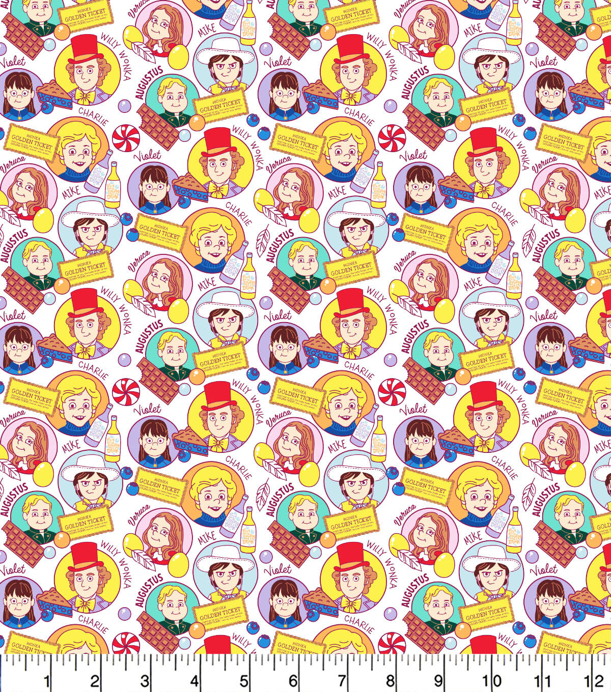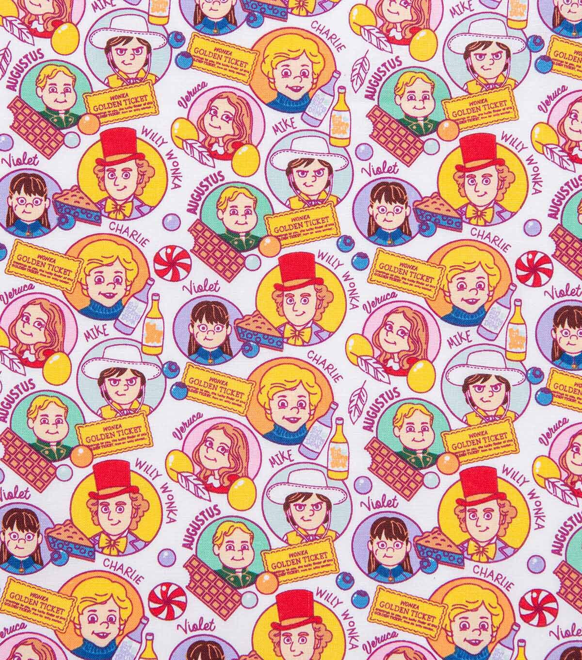 Willy Wonka Cast Toss Cotton Fabric