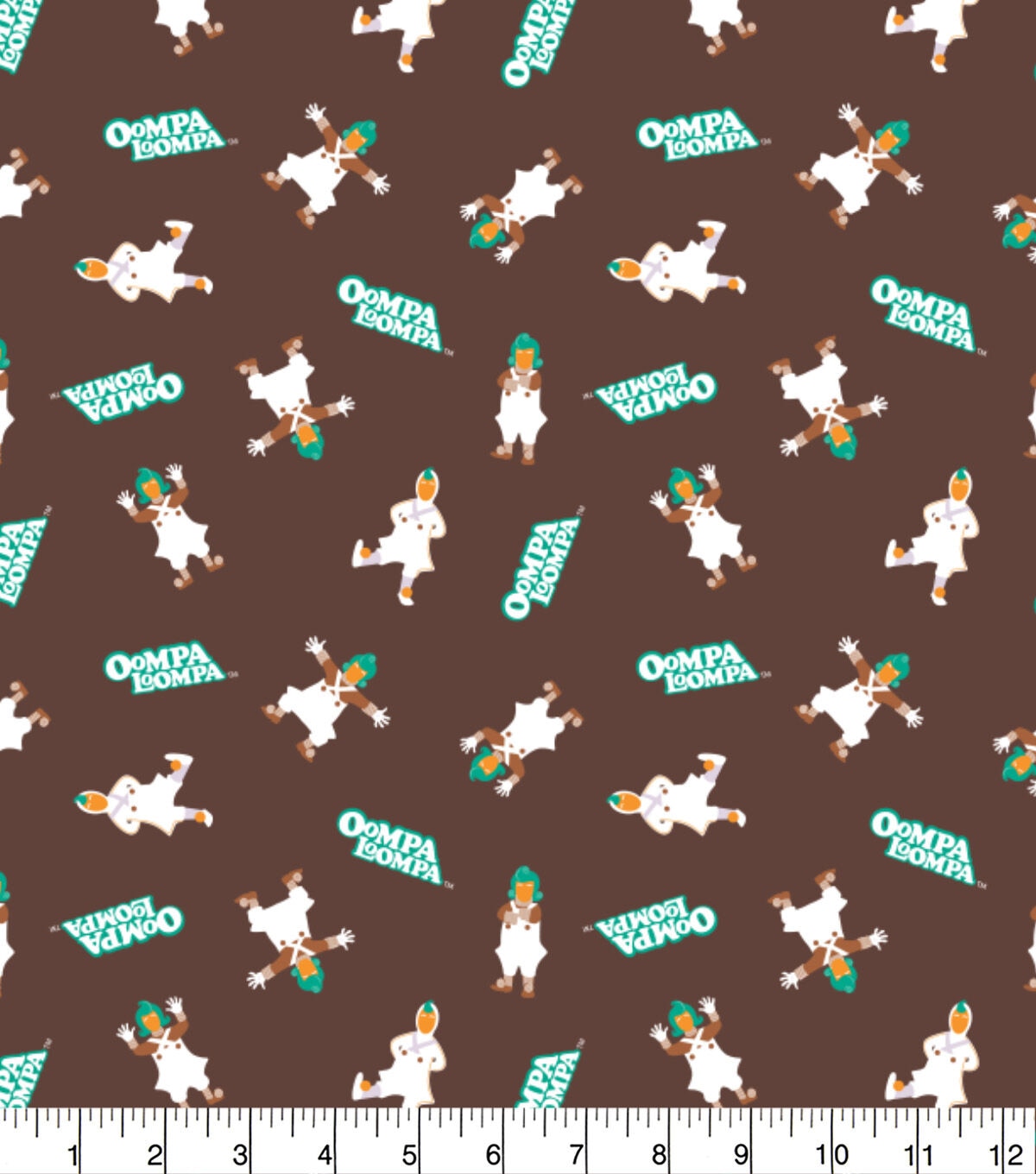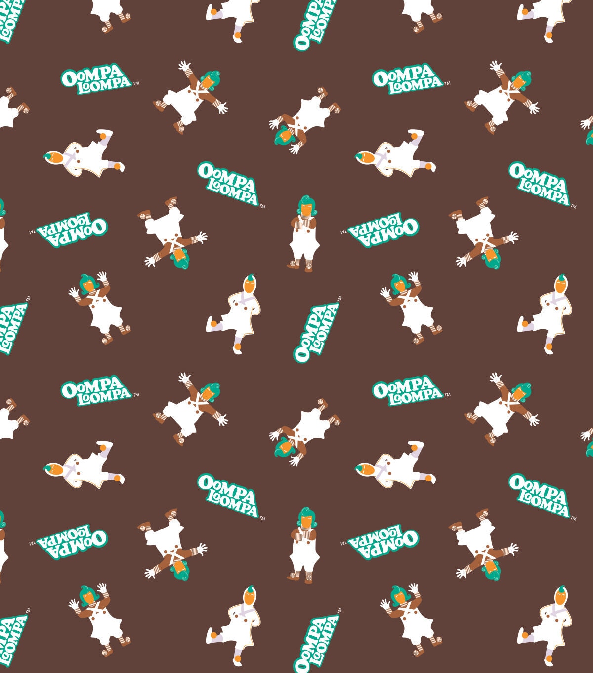 • Willy Wonka Cotton Fabric Oompa Loompa on Brown